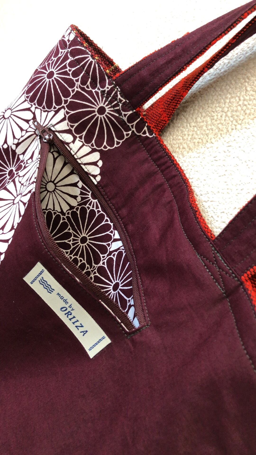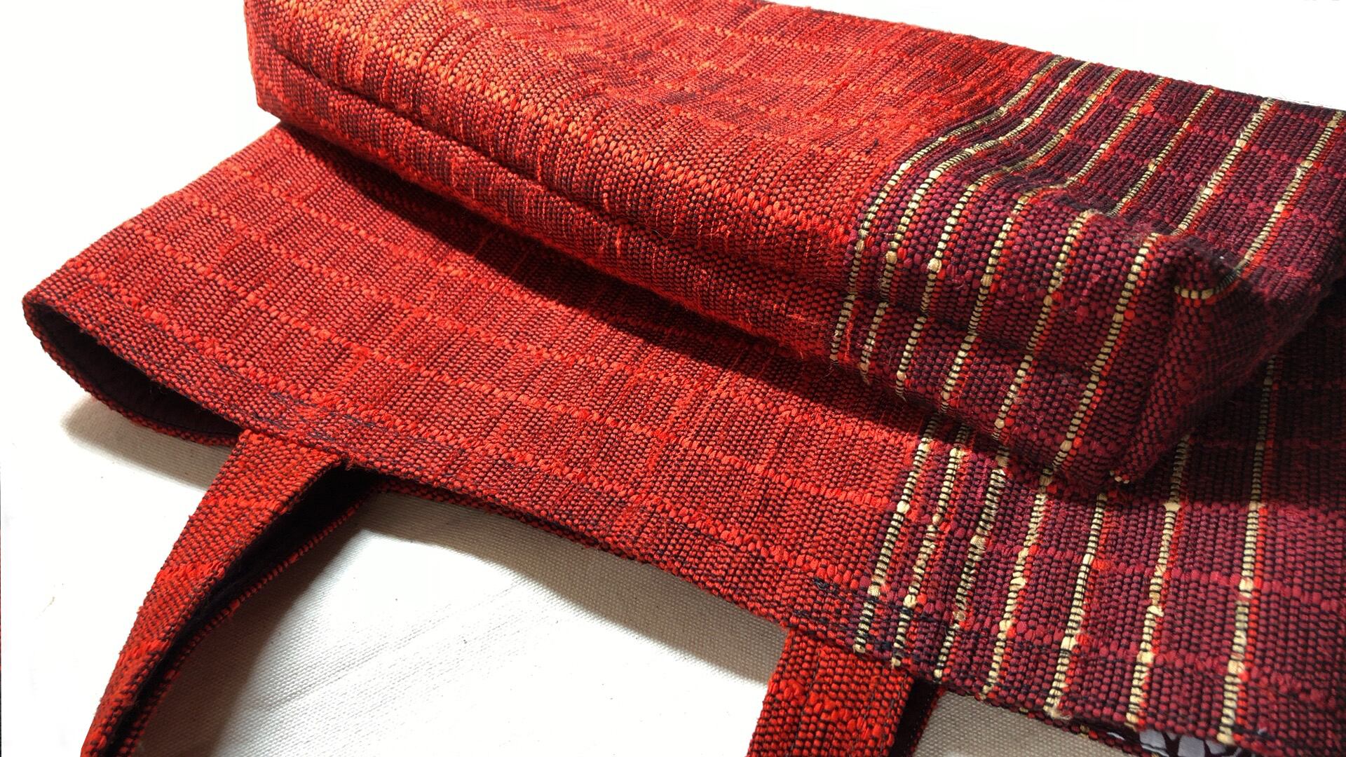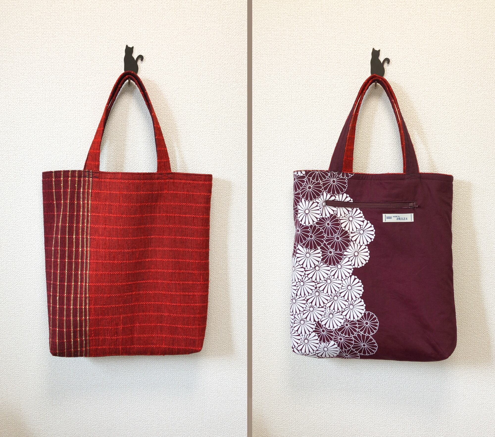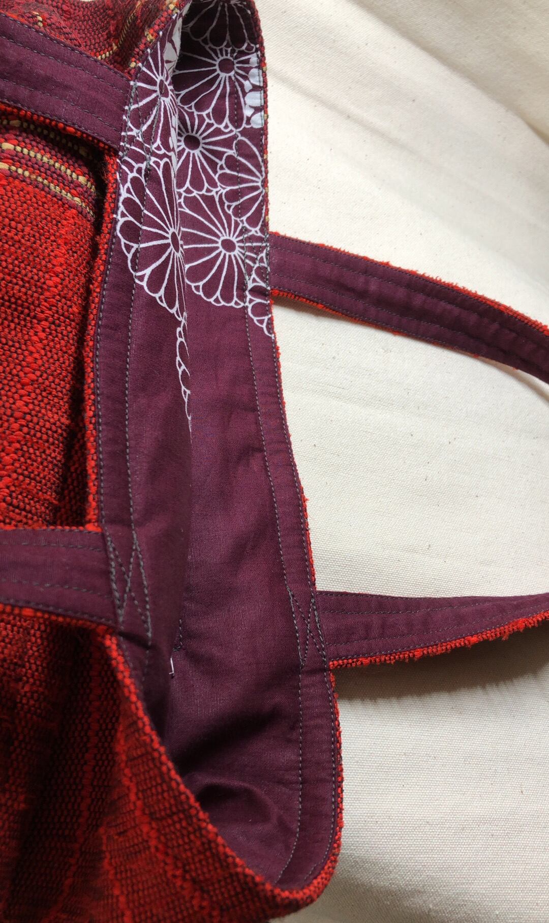 裂き織り 紅絹のトートバッグ(リバーシブル可能)