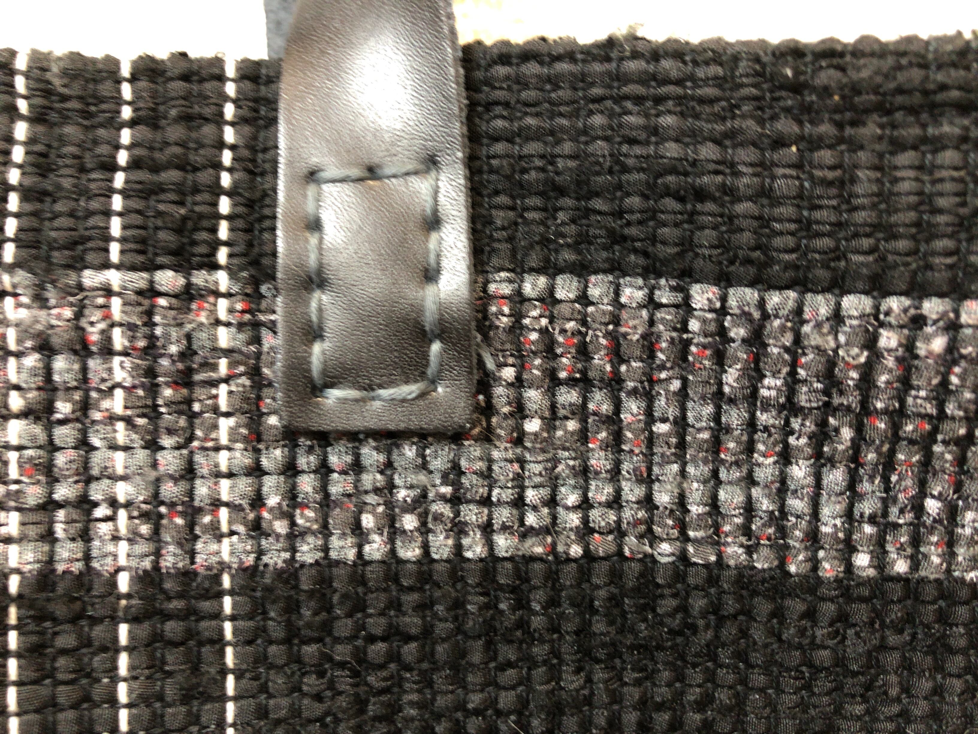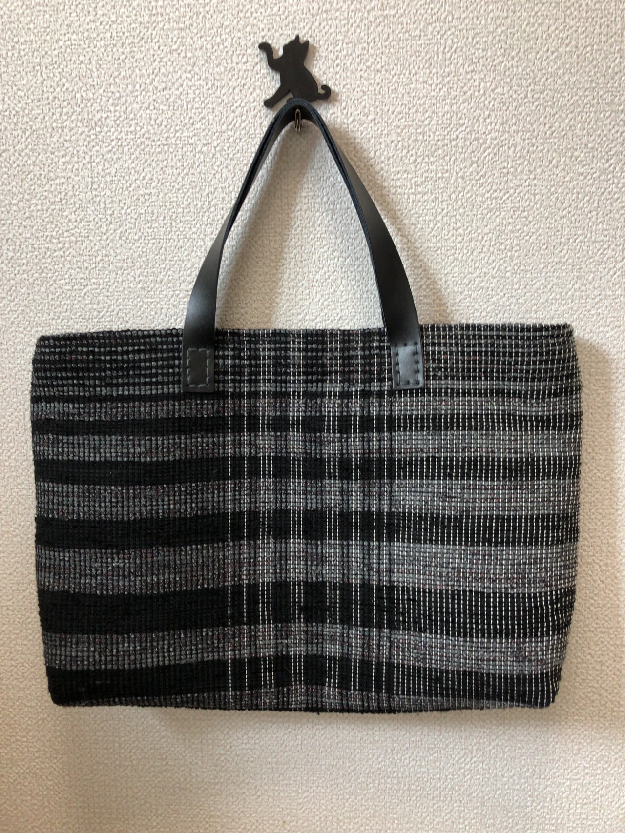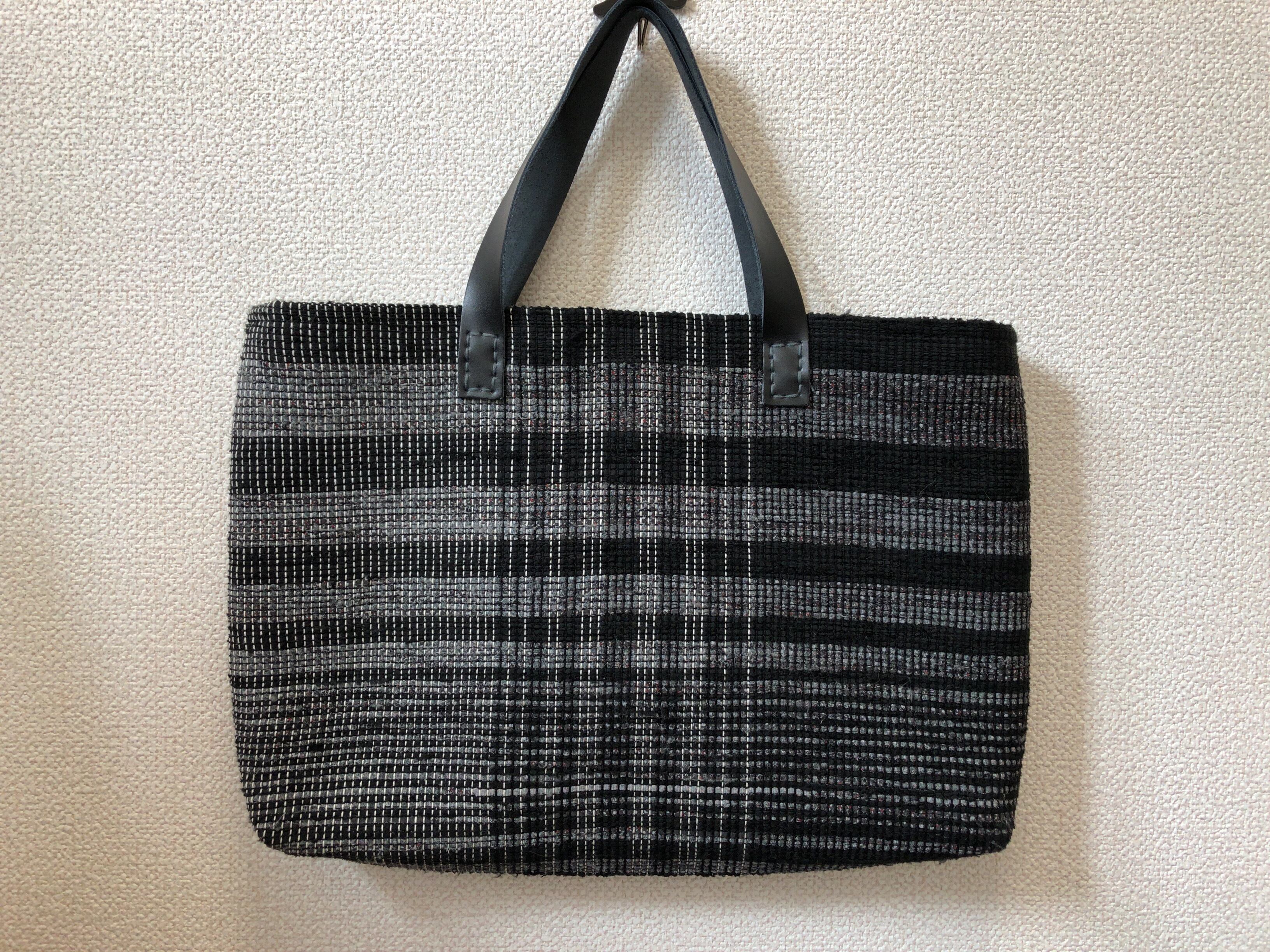 裂き織り モノトーン調バッグ 本革持ち手