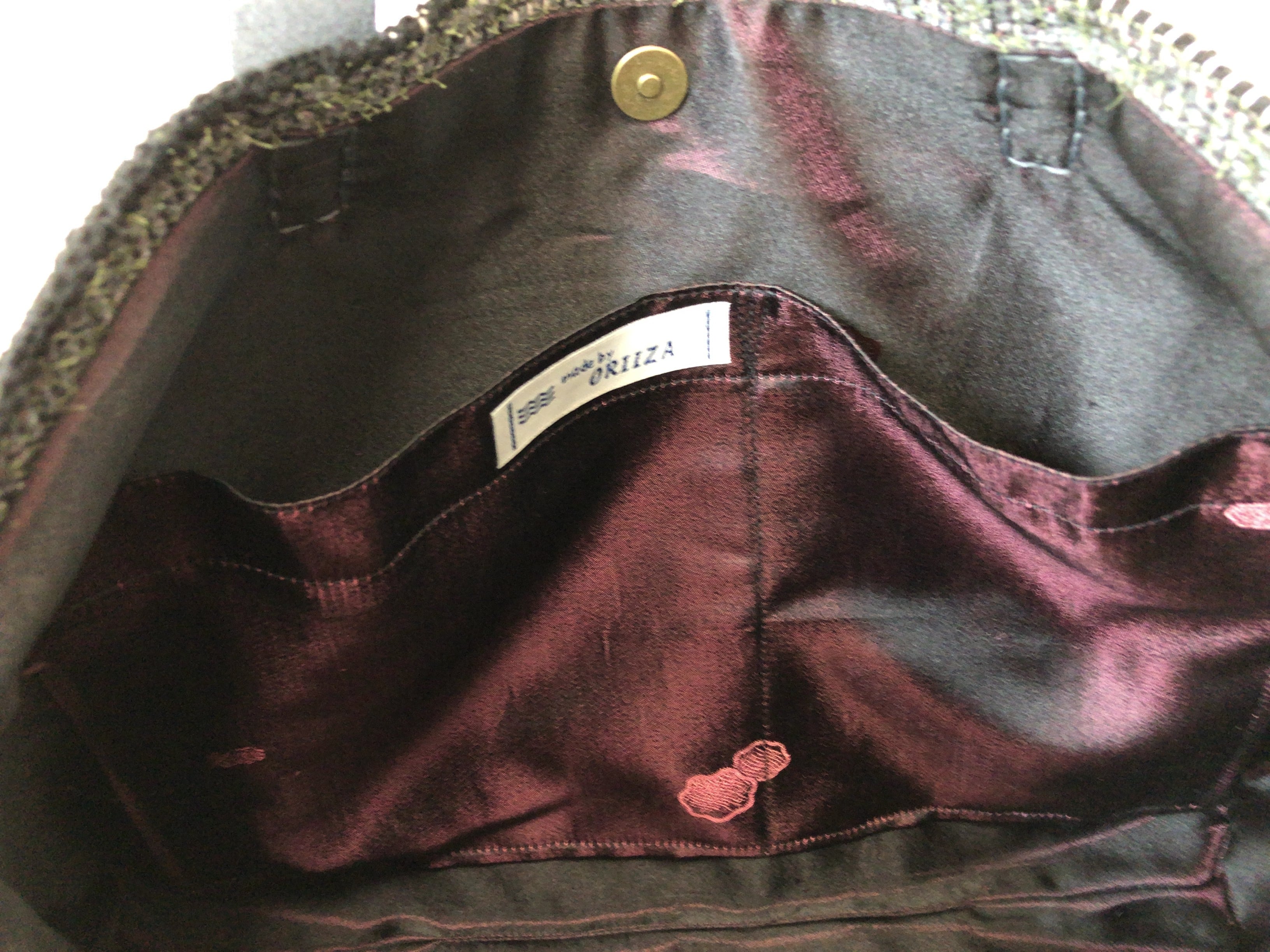 裏地は一見黒に見えますが、反対側がピンク糸で織られており、