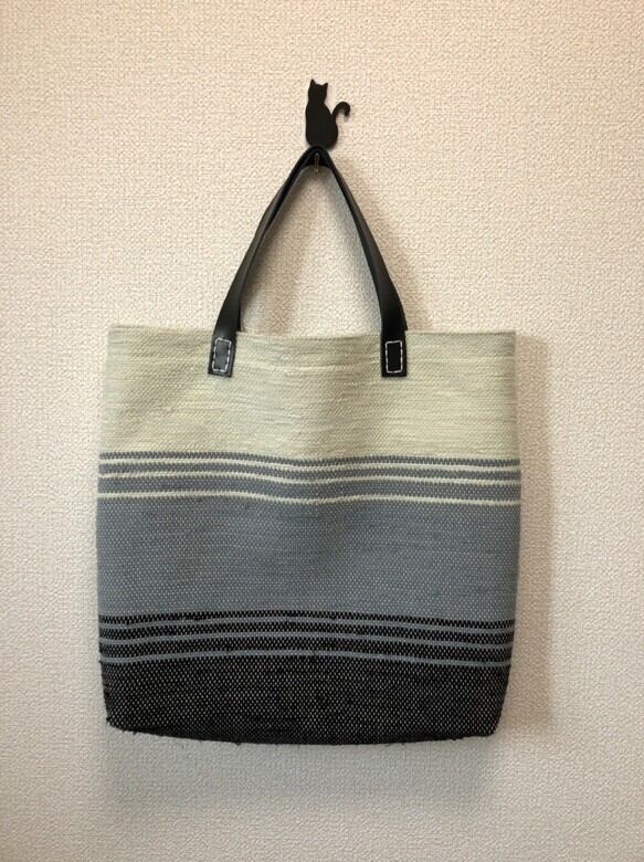 ★セール★ 裂き織り トートバッグ 本革持ち手