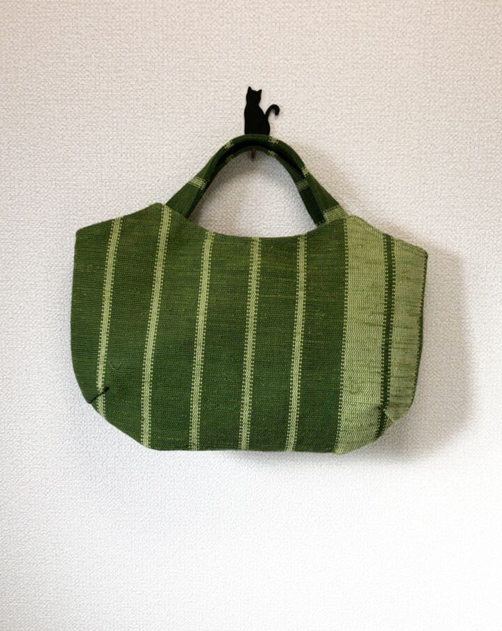 ⁂セール⁂ 裂き織り 横長ミニバッグ (グリーン系ストライプ)