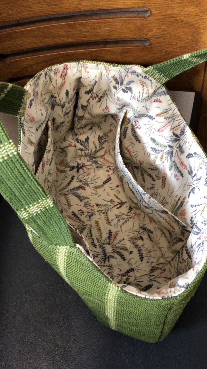 内生地はボタニカル柄の着物生地(おそらくウール)を使用しています。