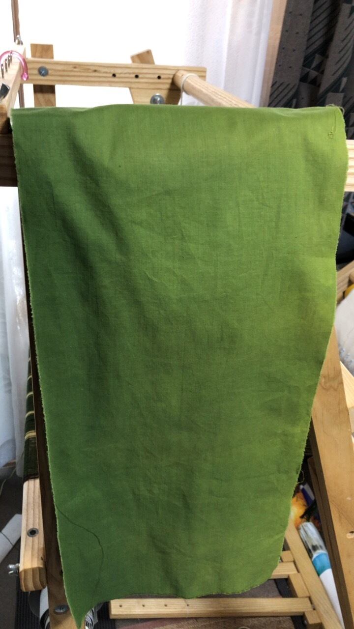 緑とクリームイエローの経糸を使用。