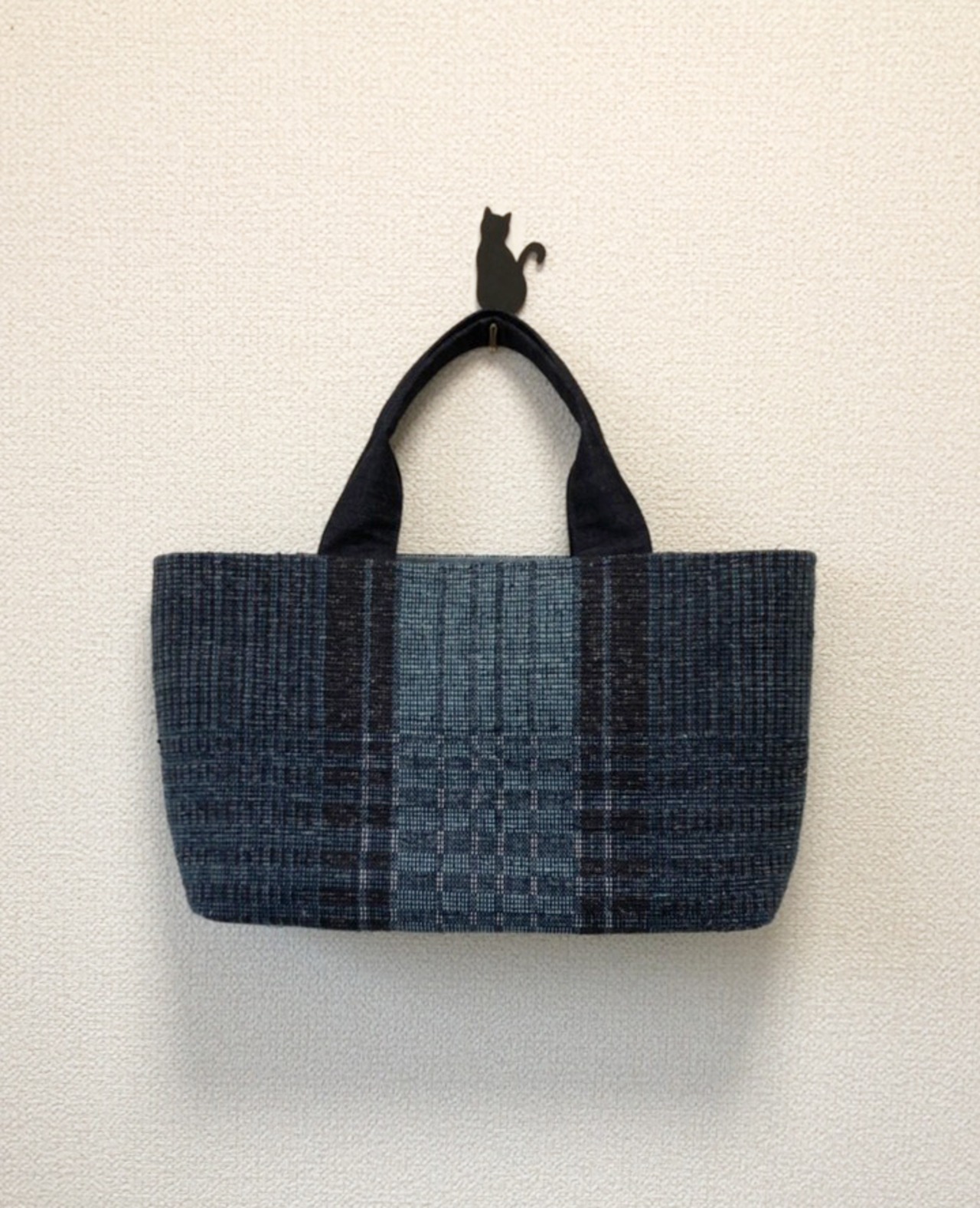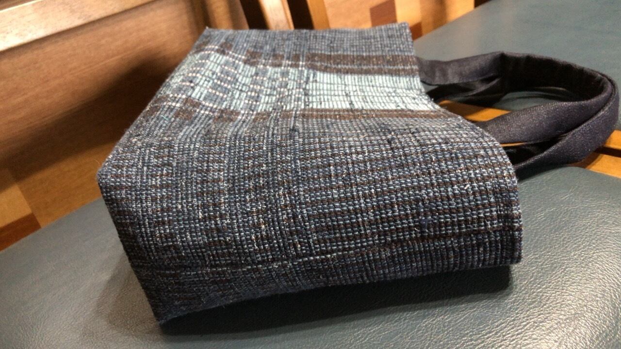 裂き織り 横長ミニバッグ (ダークブルー系)