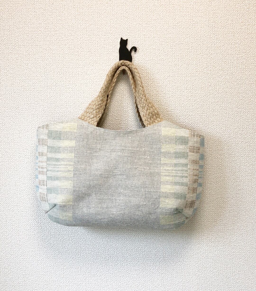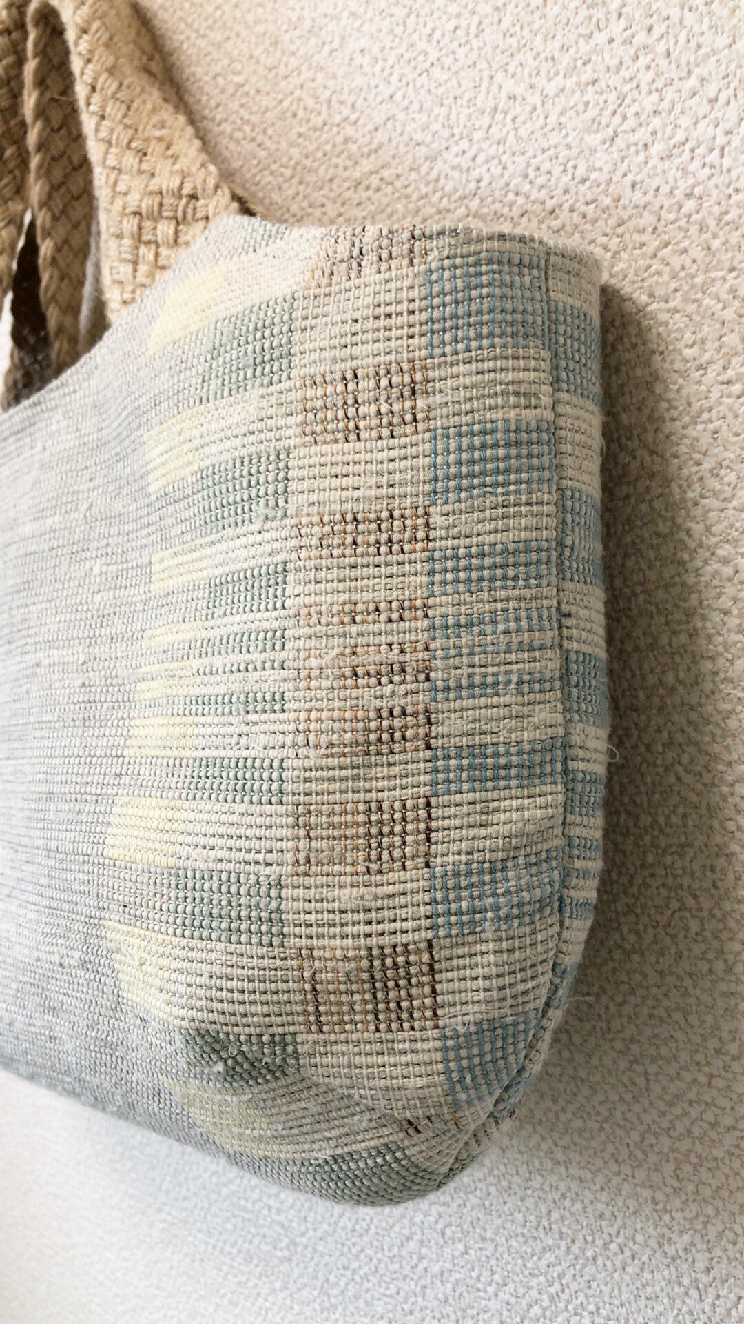 裂き織り 夏の横長ミニバッグ(麻ひも持ち手)