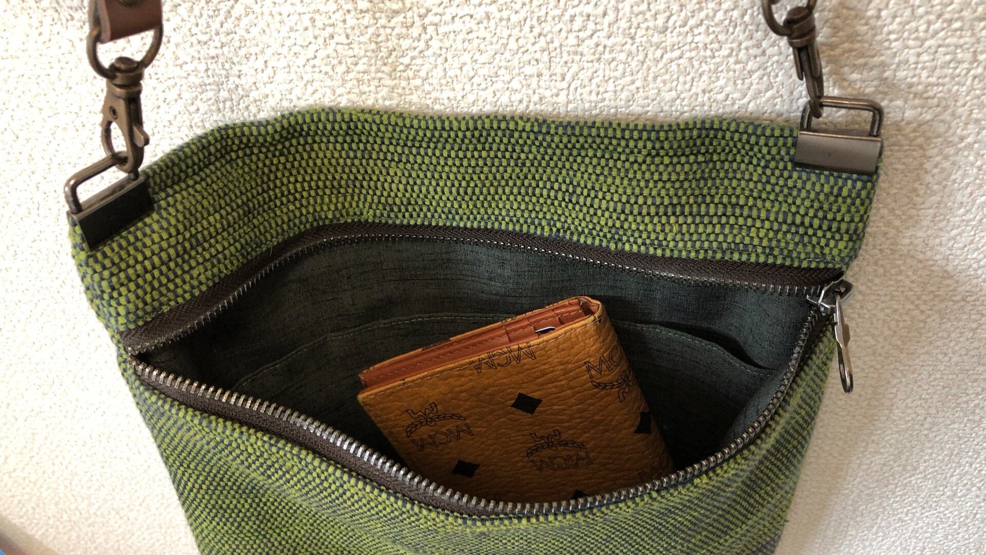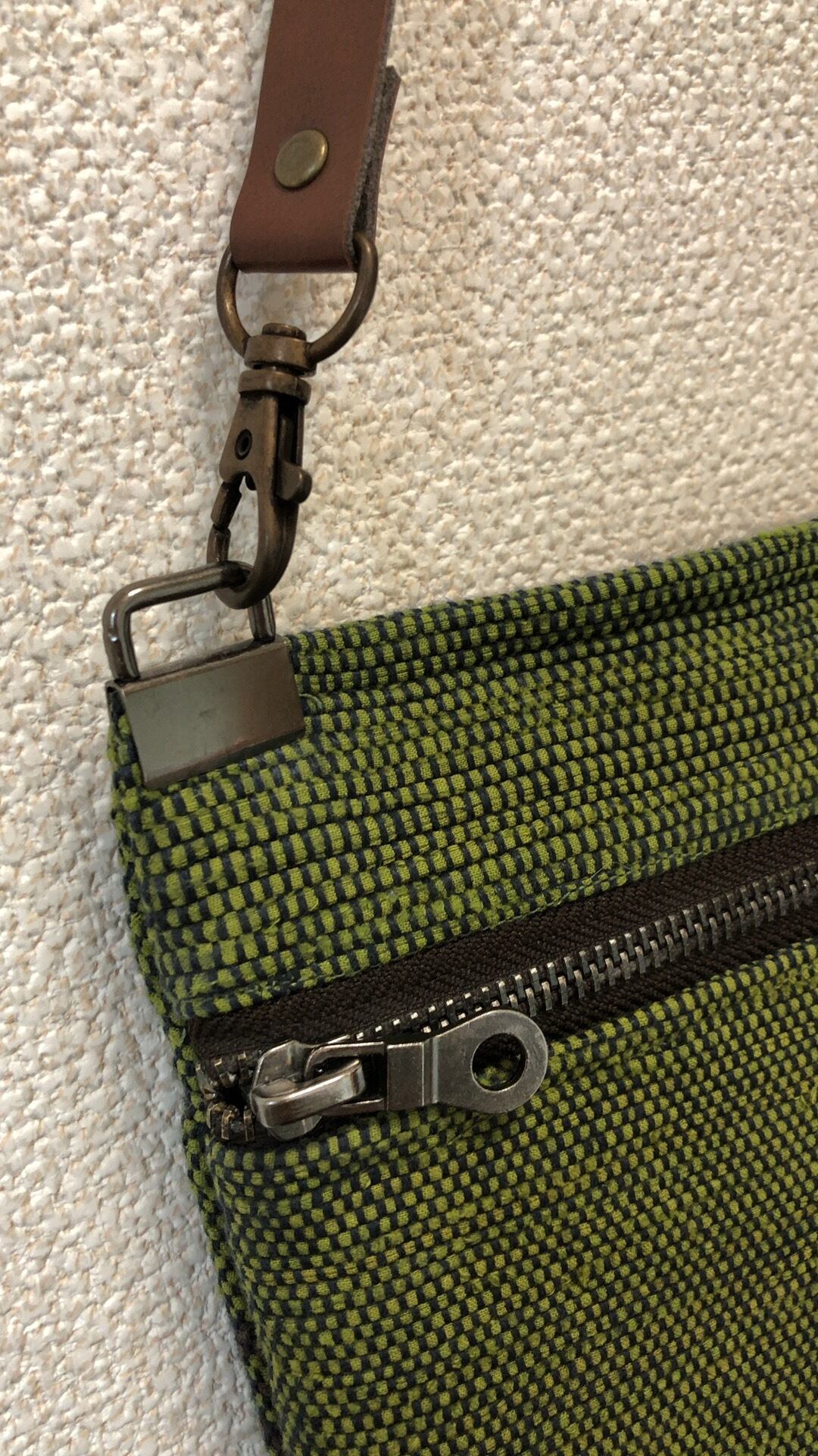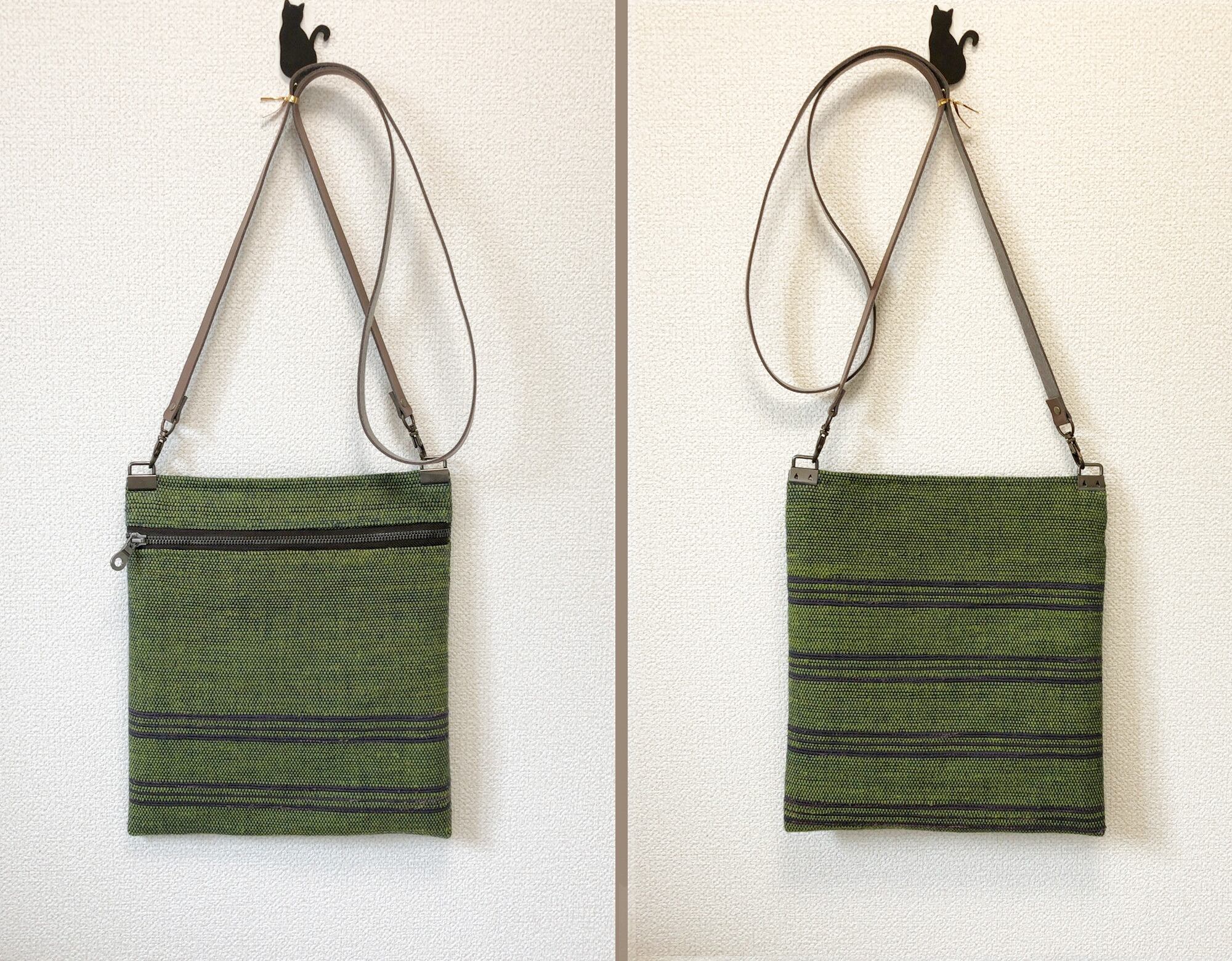 裂き織り ポシェット(サコッシュ)モスグリーン×焦茶