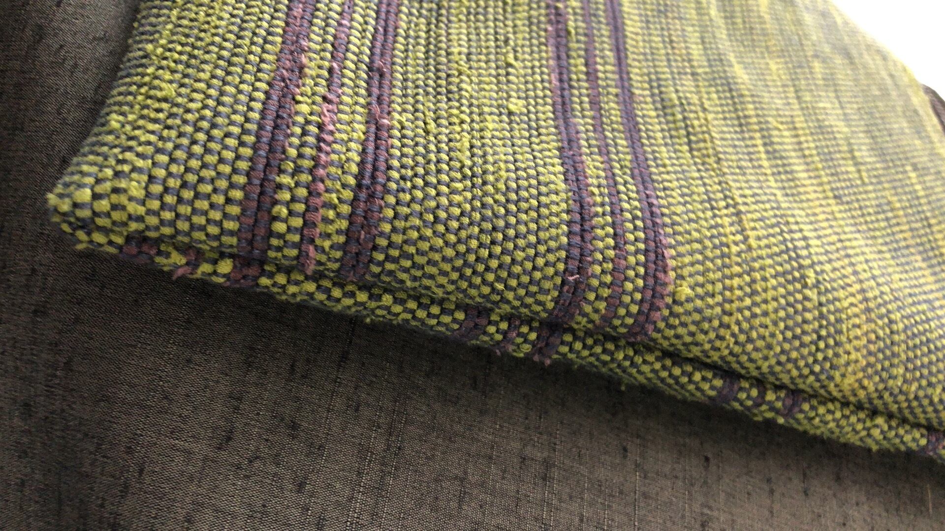 新松葉色の綿モスリンに焦茶のストライプを入れました。