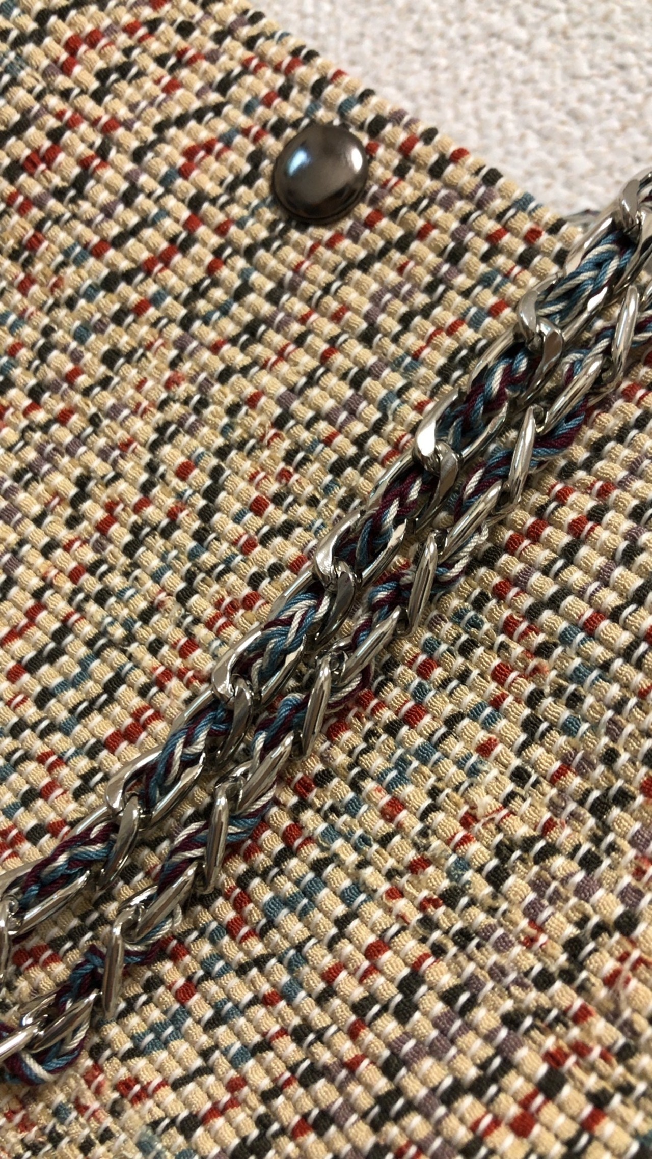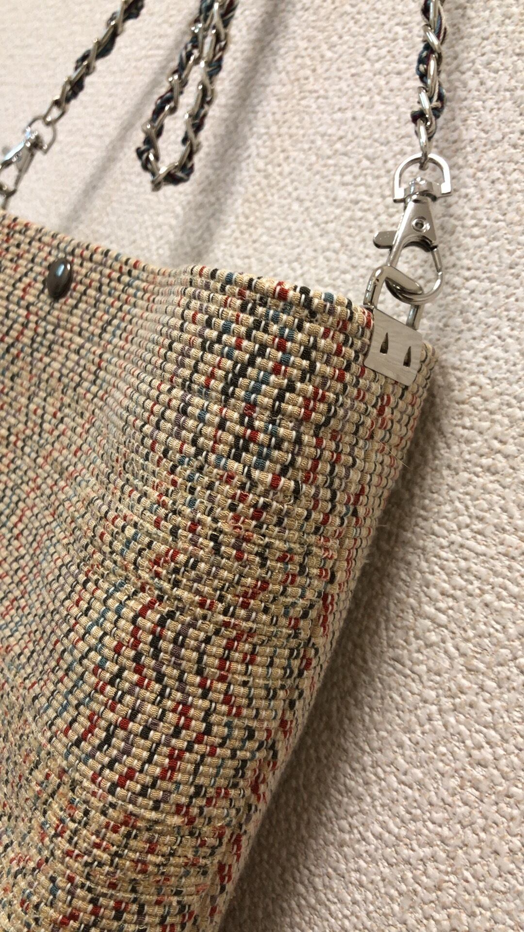 チェーンの中には、布色と似た、エンジ・ベージュ・水色系の