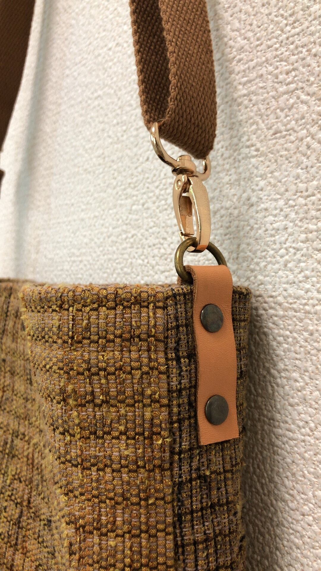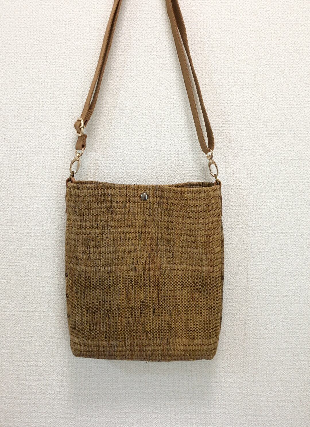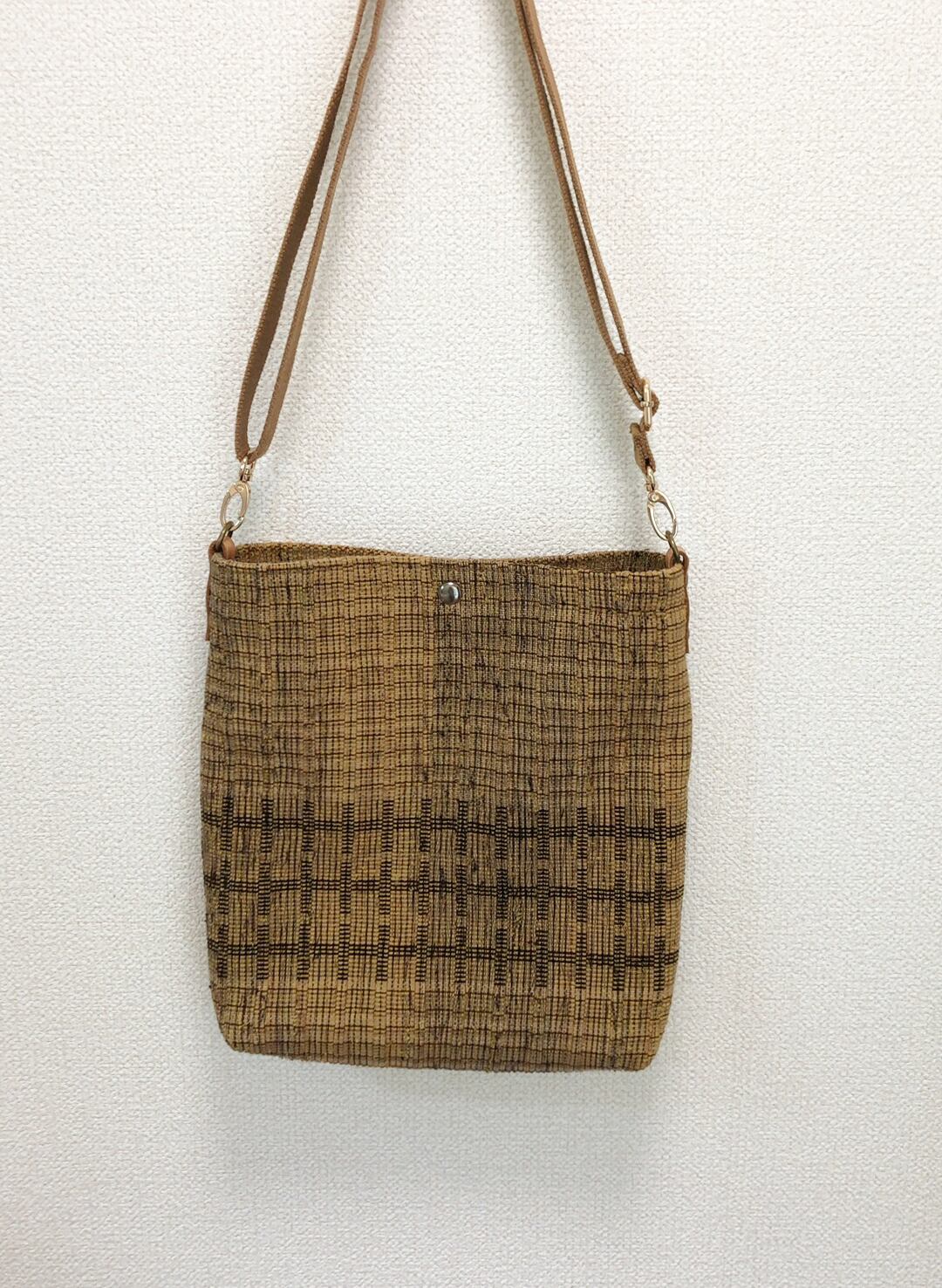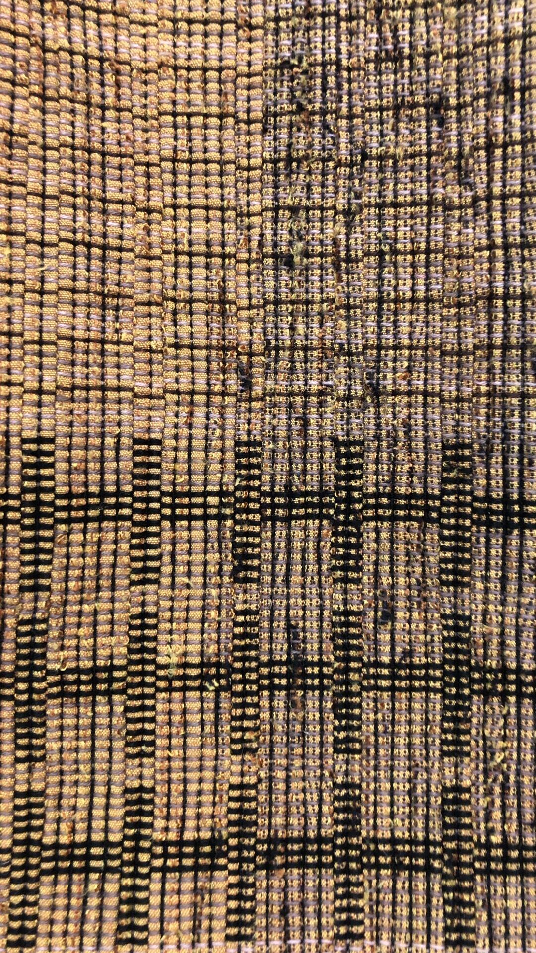 茶系と黒の経糸で暗めになり、黄土色?のような感じでもあります。