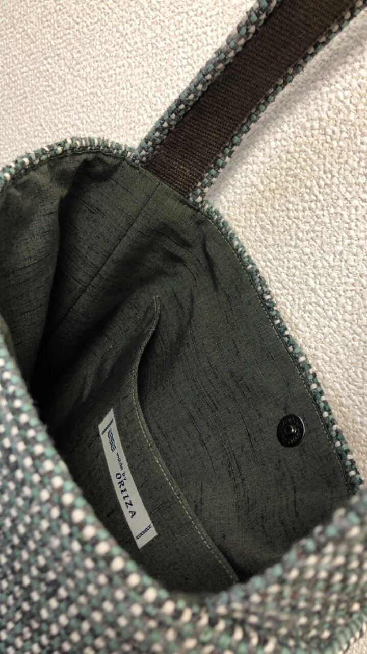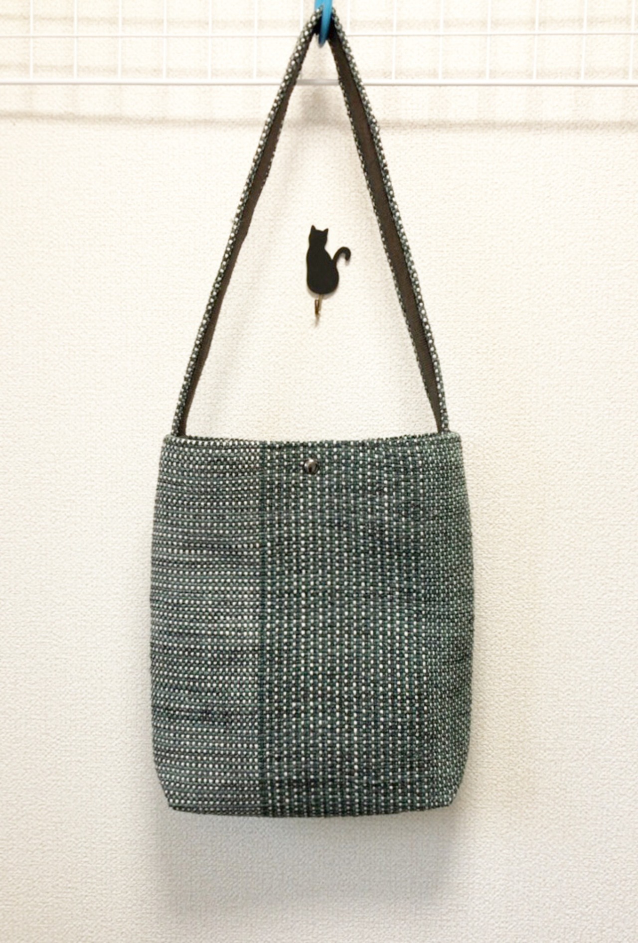 裂き織り ななこ織のワンショルダー(グリーン系)