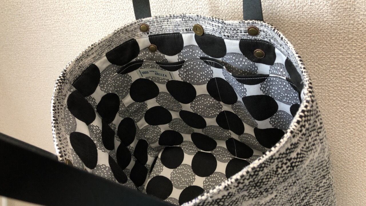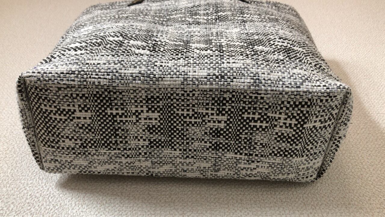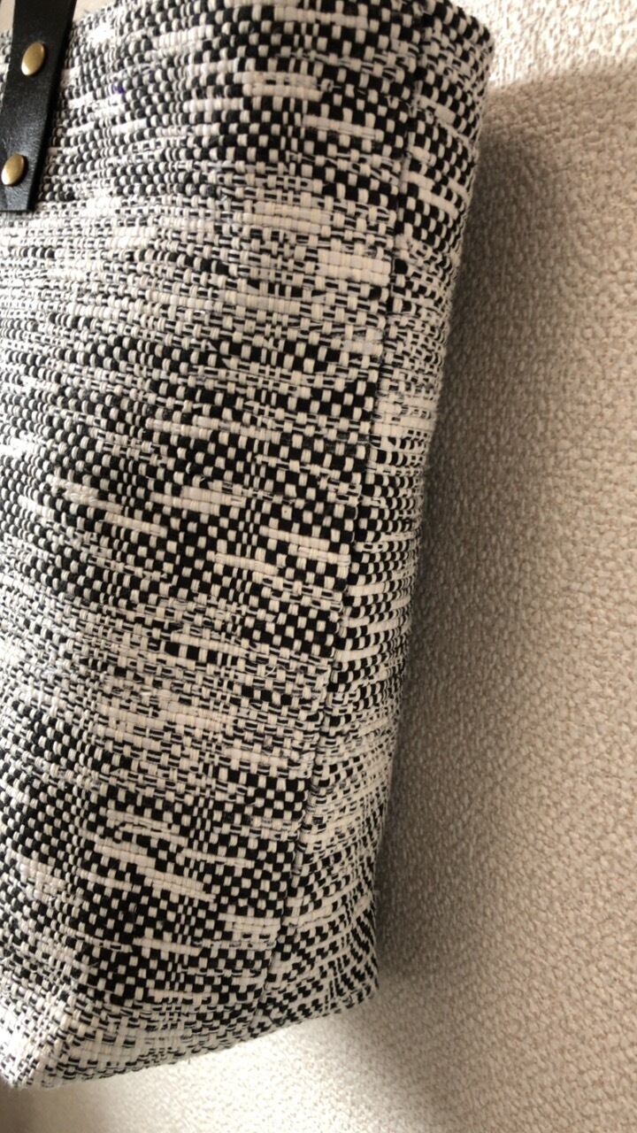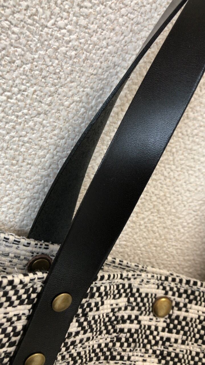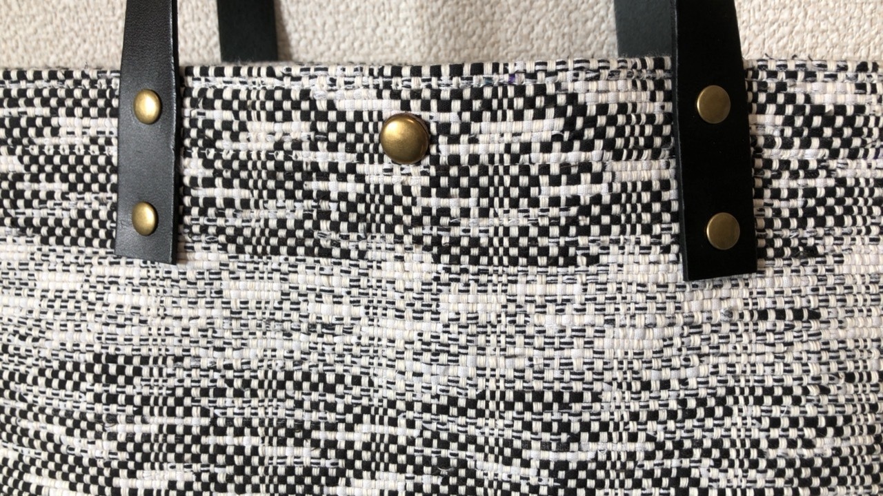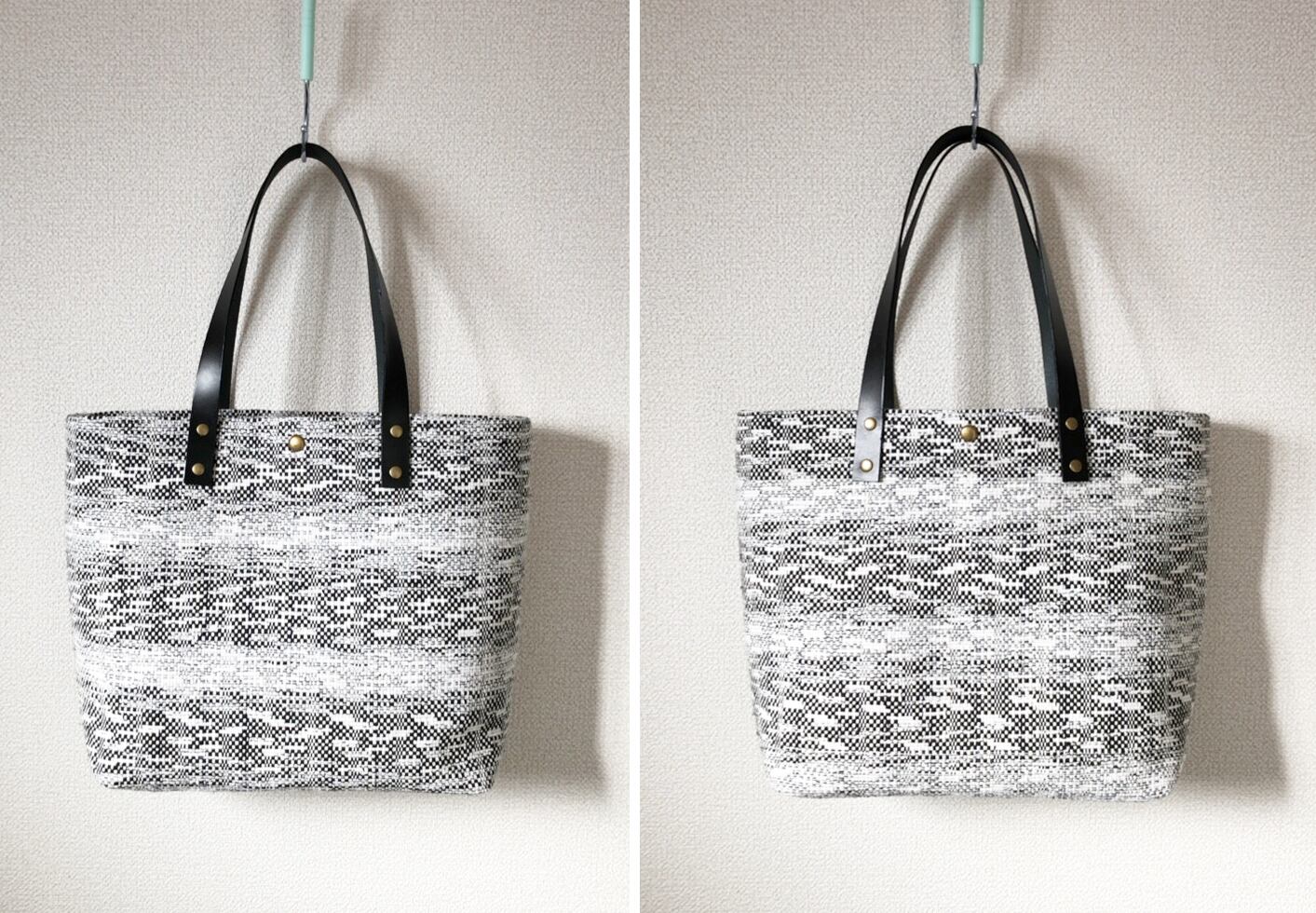 裂き織り モノトーン調トートバッグ (本革持ち手)