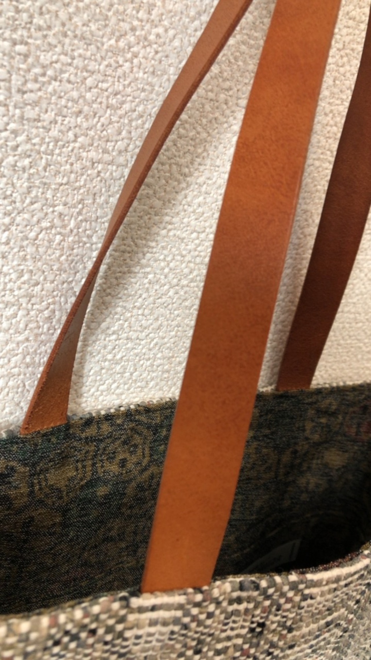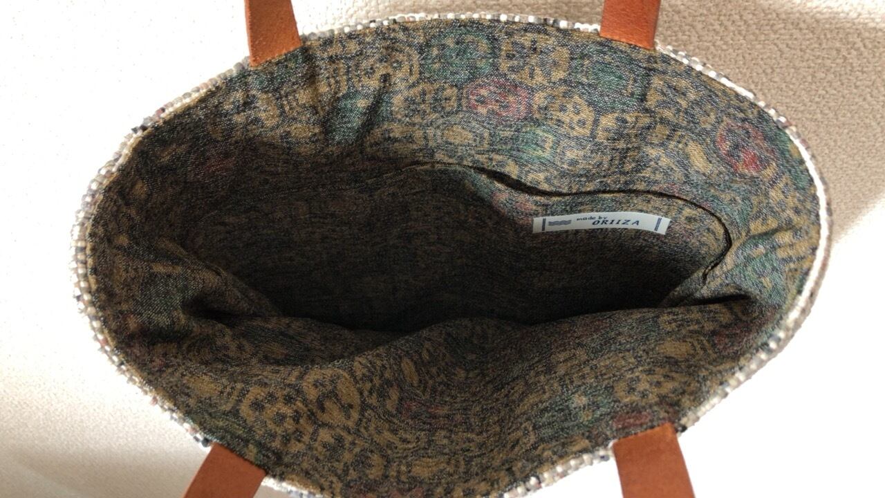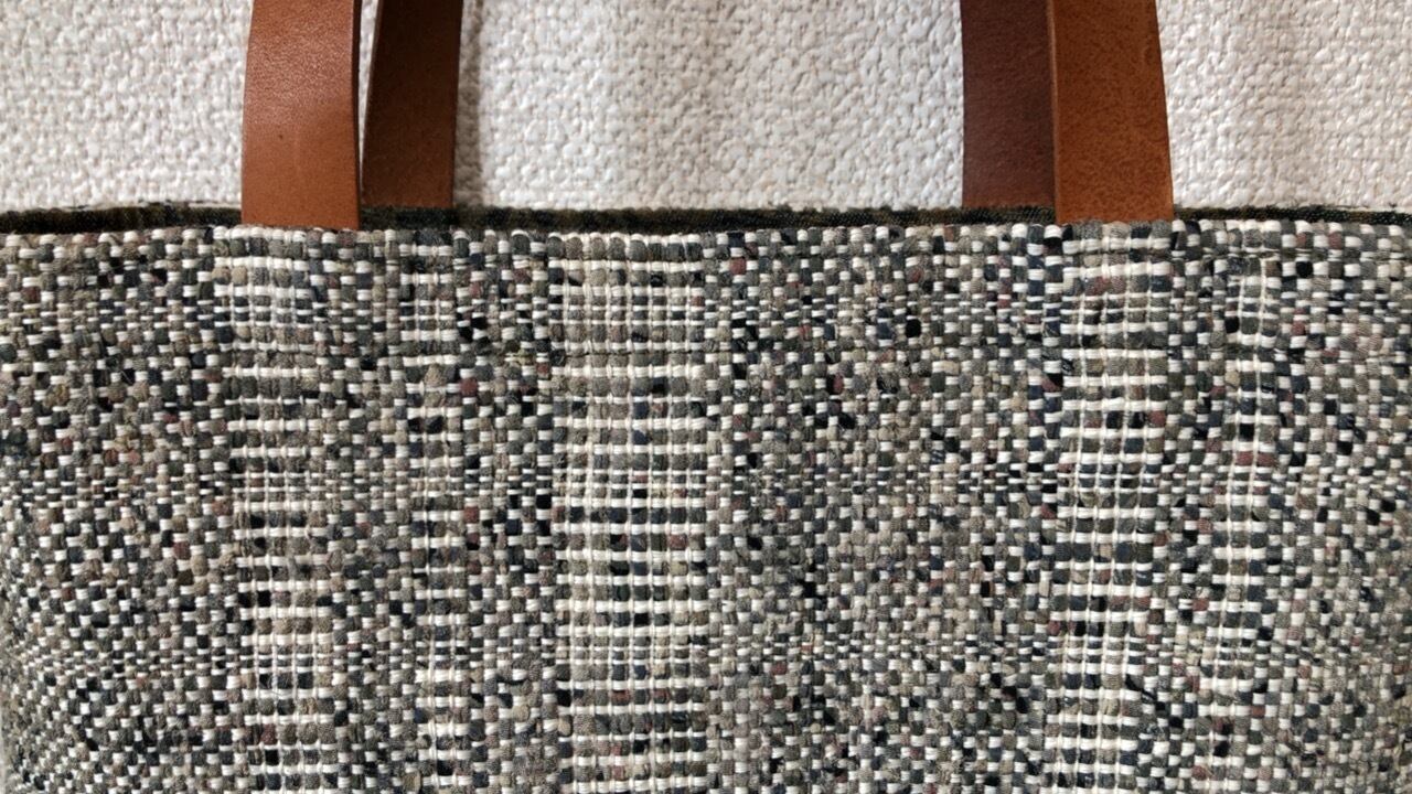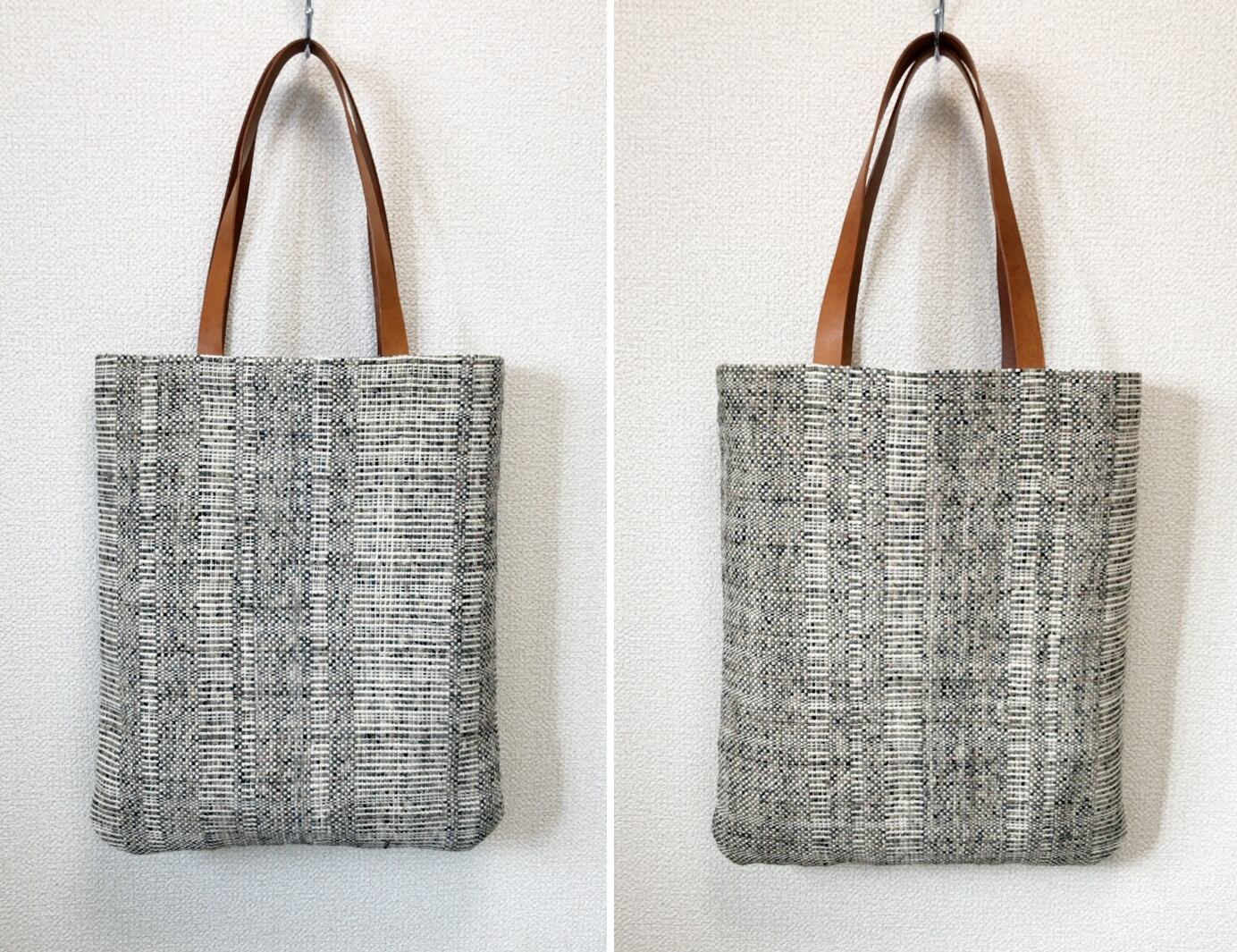 裂き織り 大人のレッスンバッグ(石畳風)本革持ち手