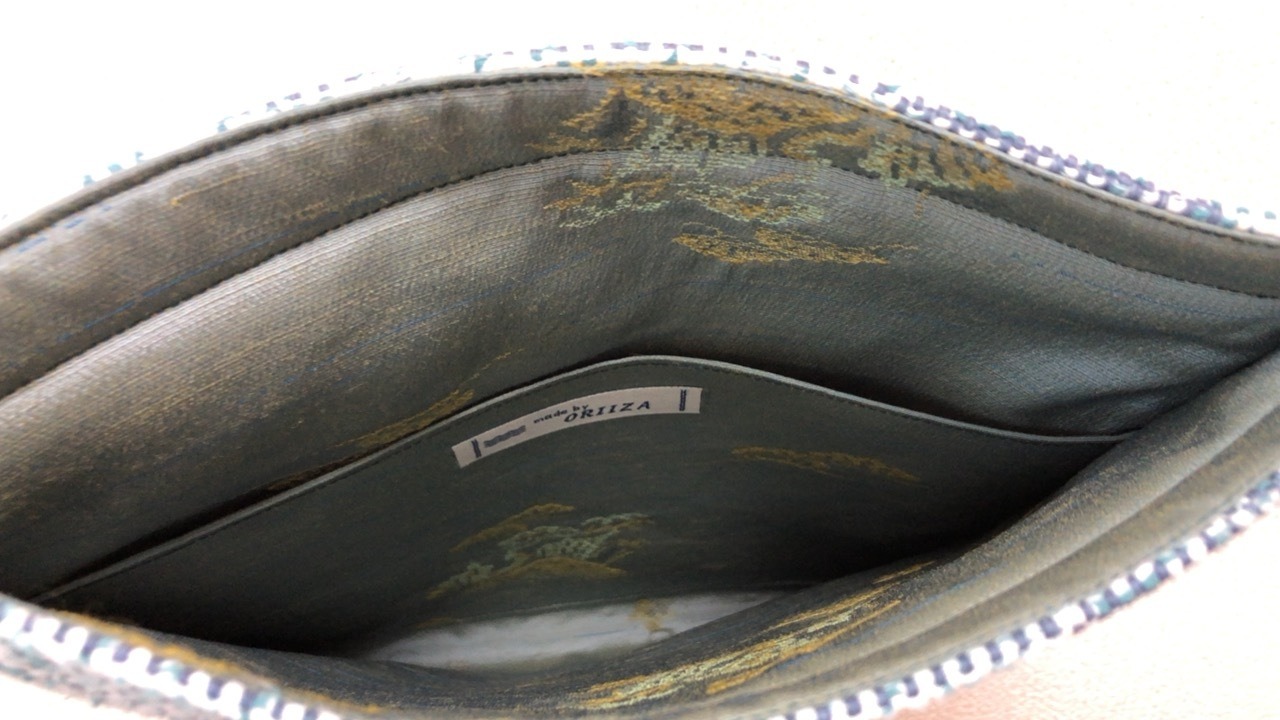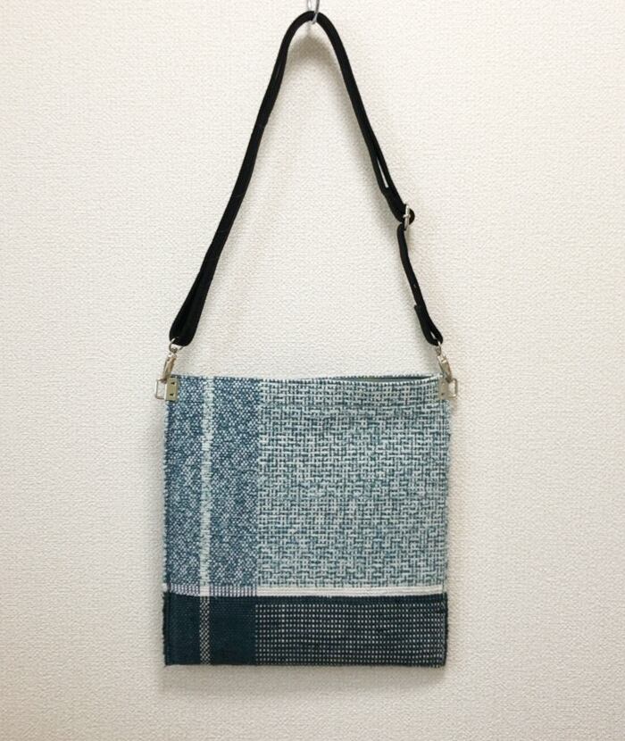 裂き織り ブルーグリーンのフラットポシェット(送料込♪)