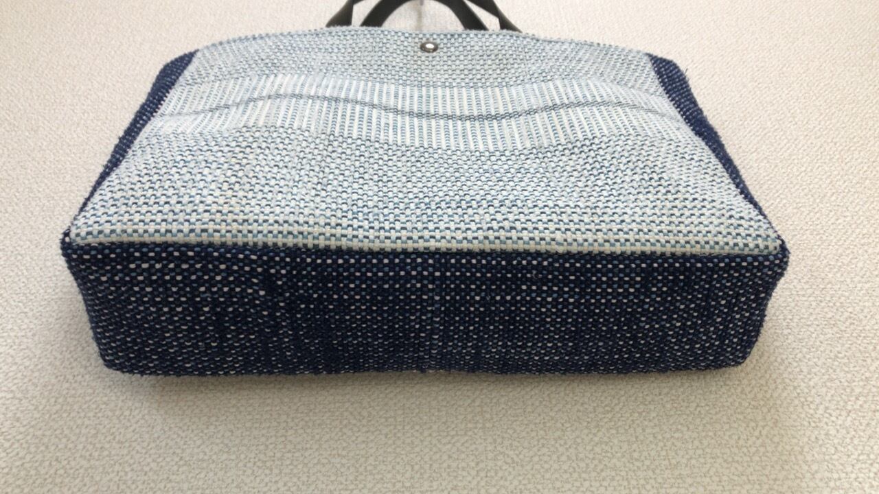 青・水色・白の経糸(コットンギマ)を使用し、