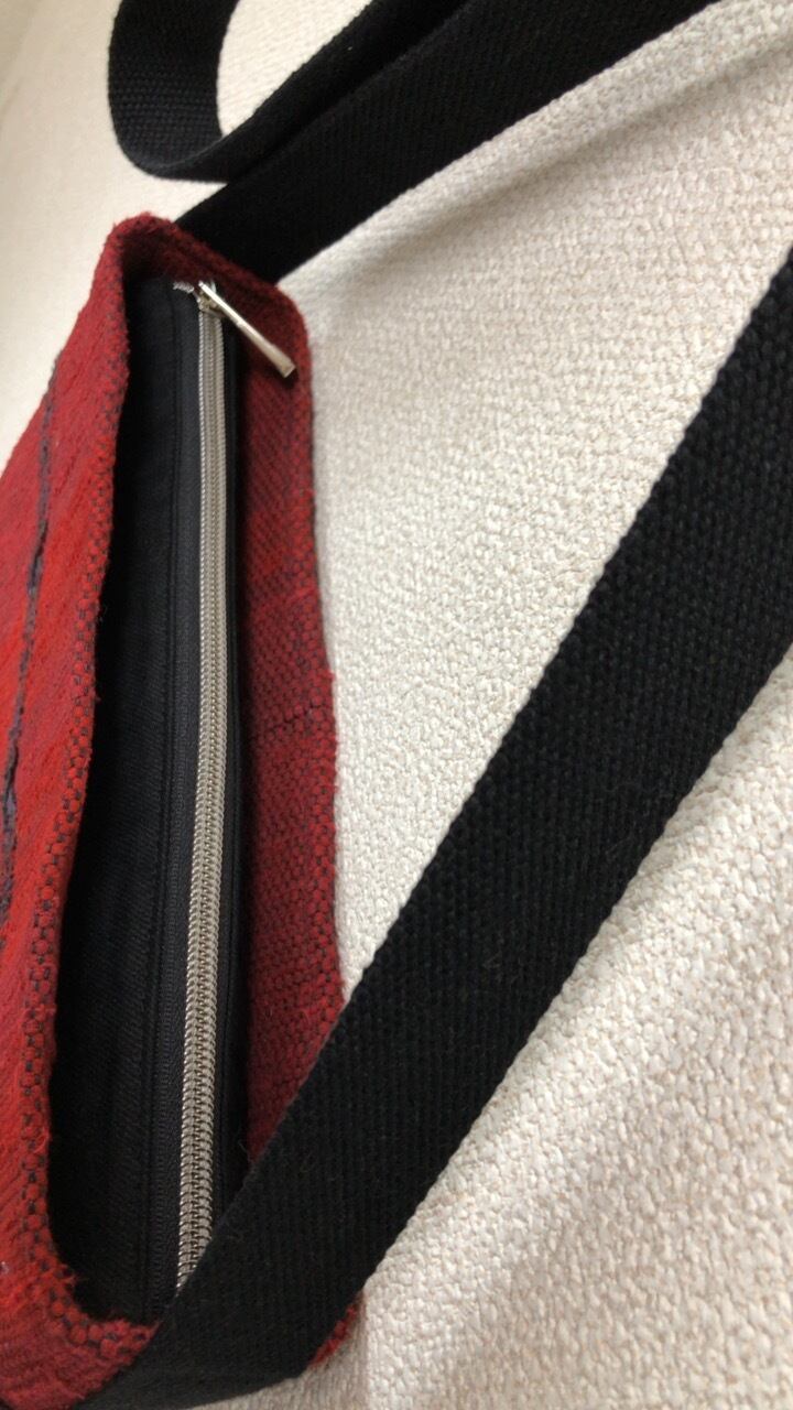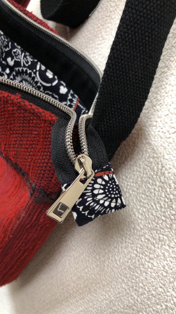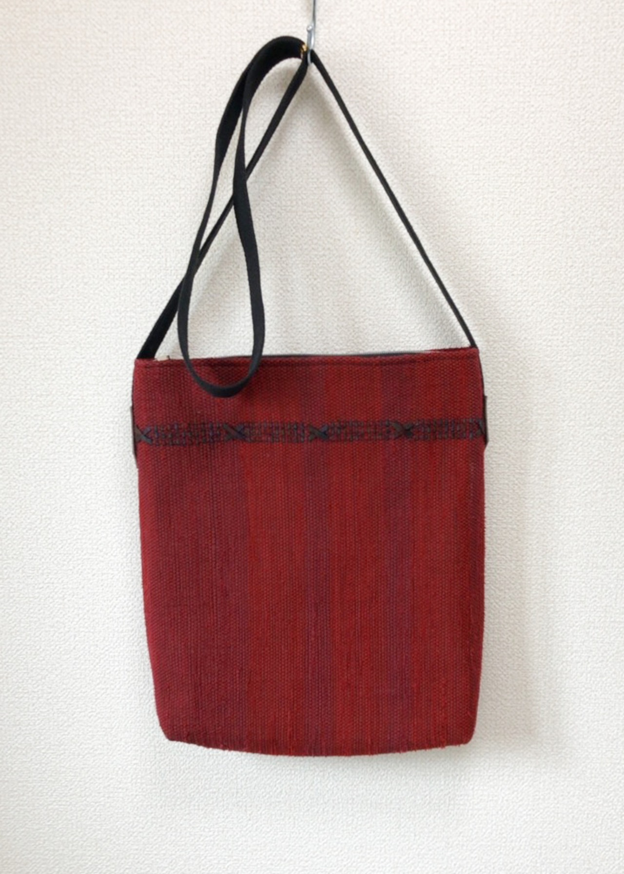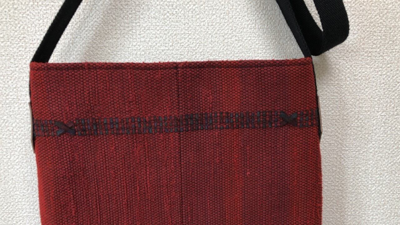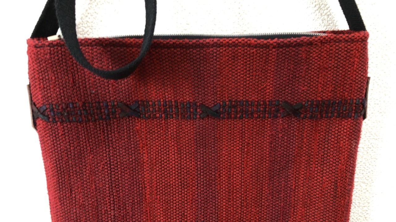 裂き織り 赤のショルダーポシェット(Xライン)