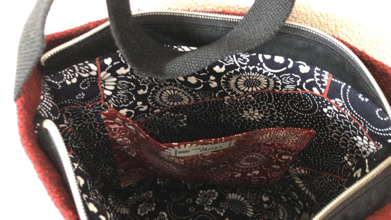 ファスナー蓋付で、内布が1色だと位置が分かりにくいと思い、