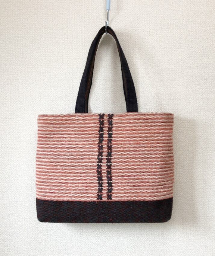 裂き織り 細ボーダーのショルダートート(Xライン)