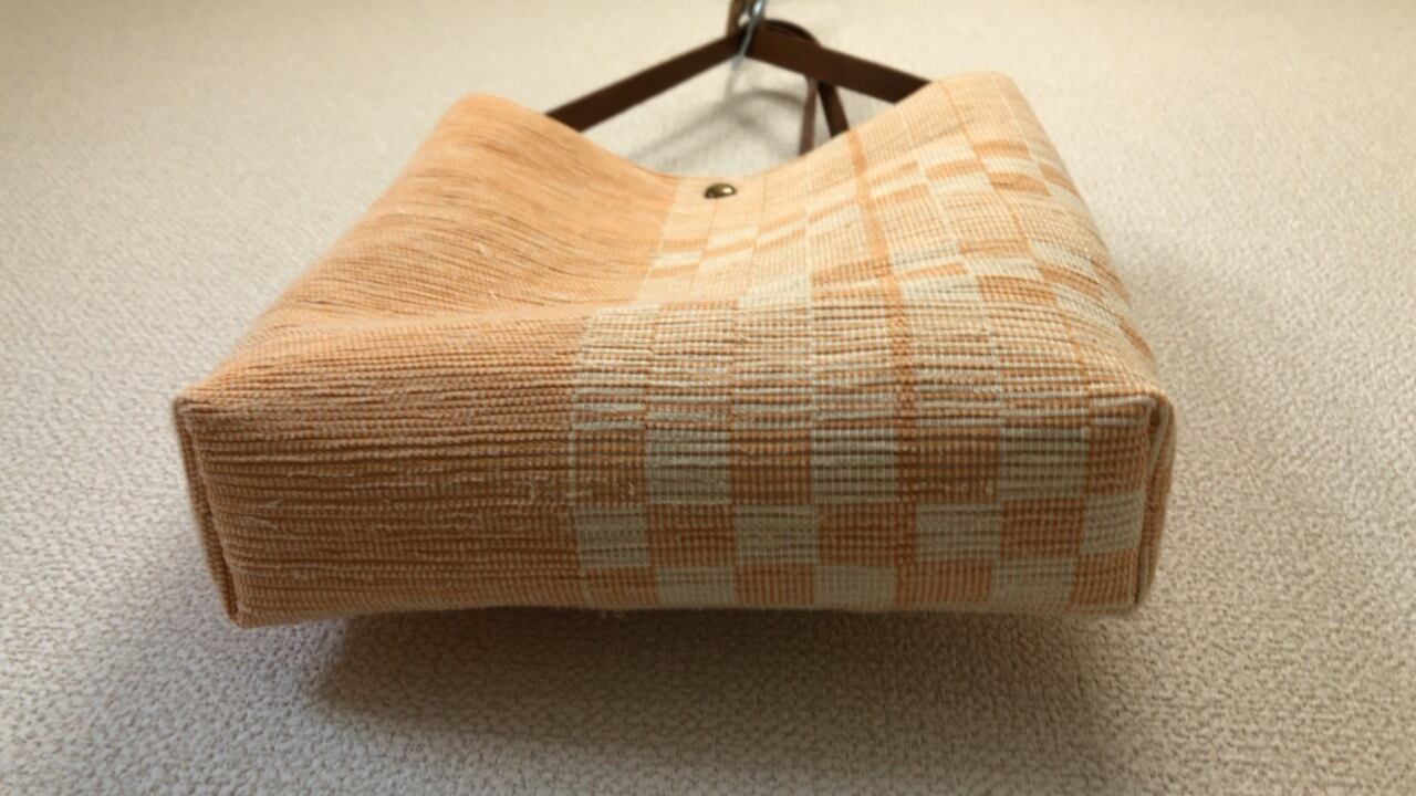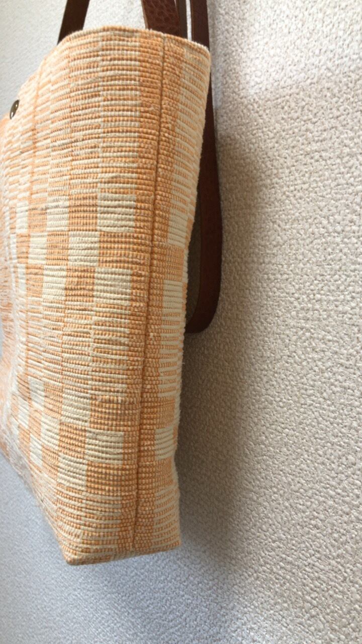 オレンジの経糸と、アイボリーの緯糸で、