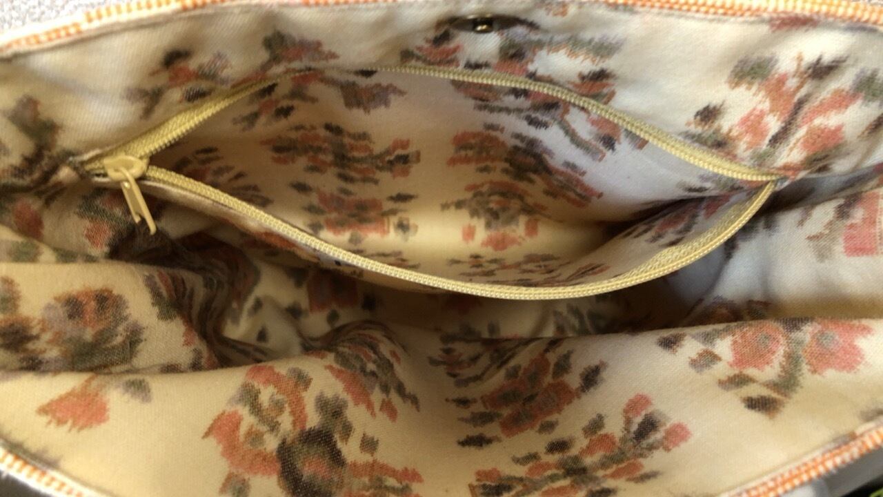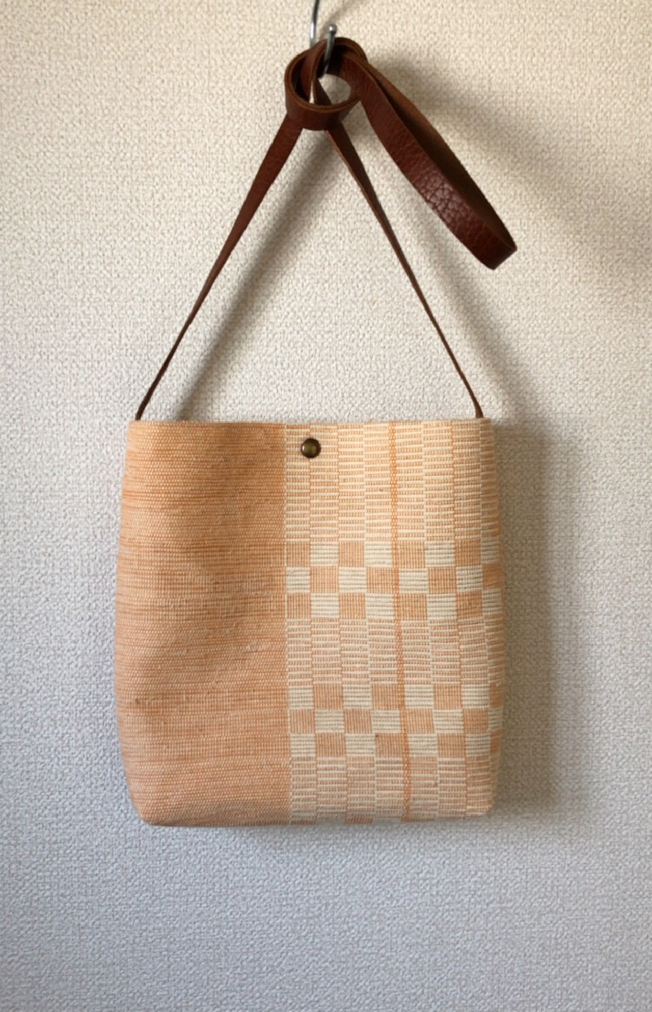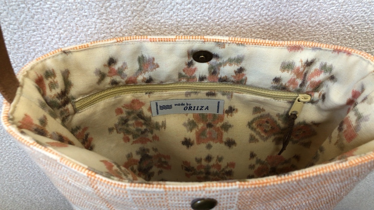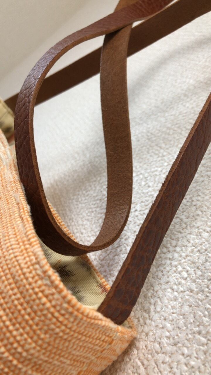 裂き織り パステルオレンジの定番系ポシェット(本革持ち手)