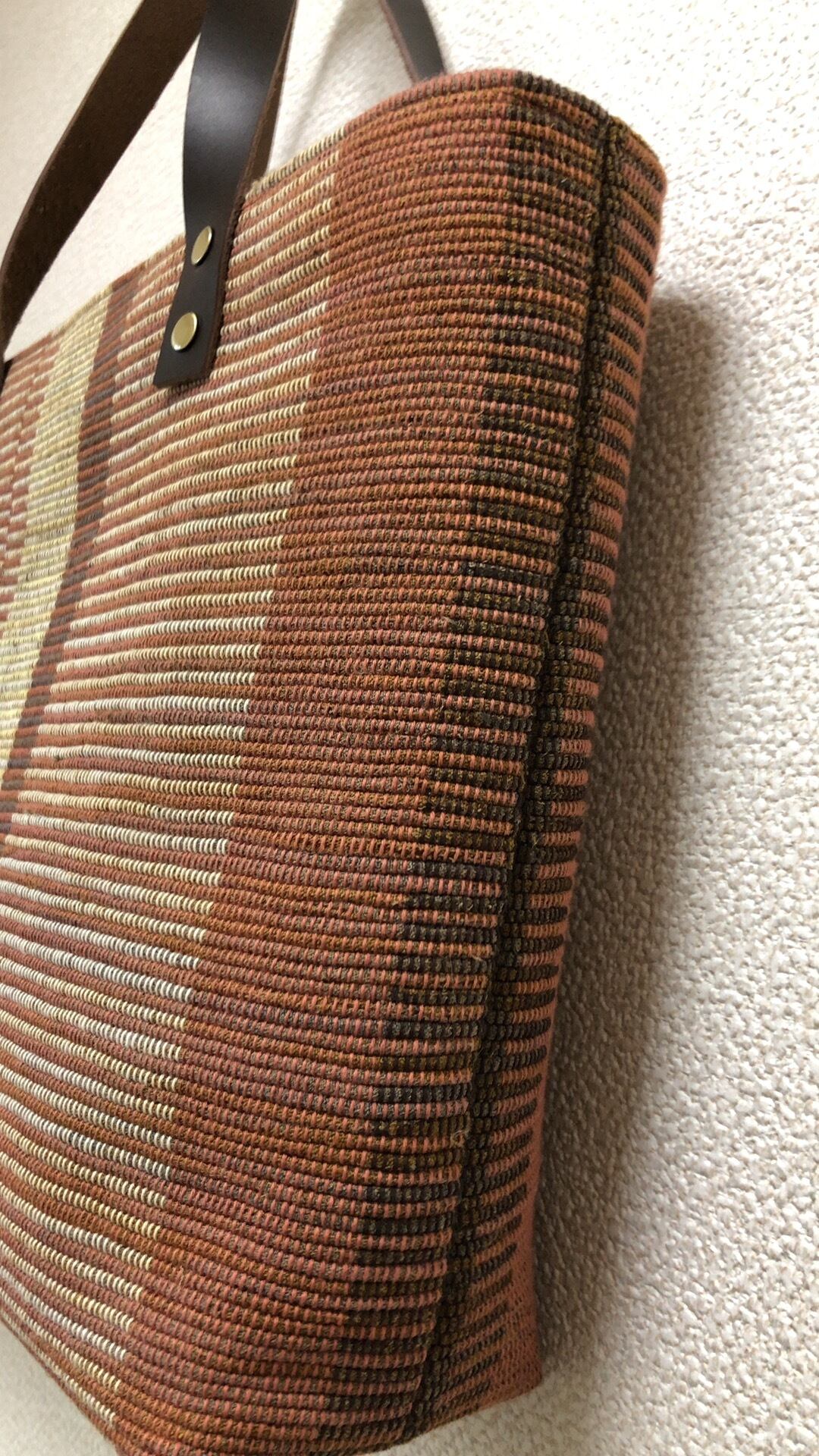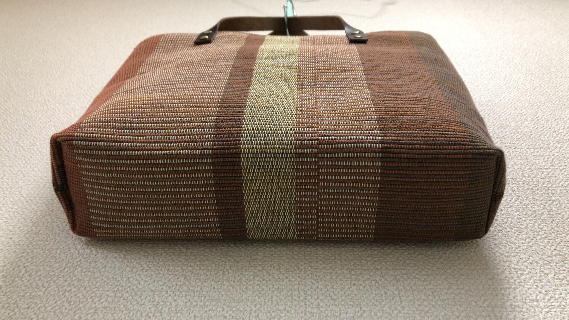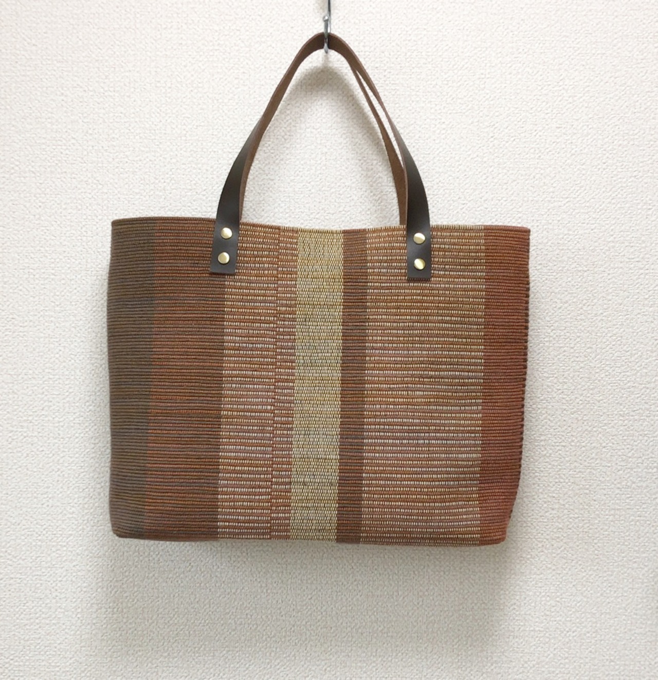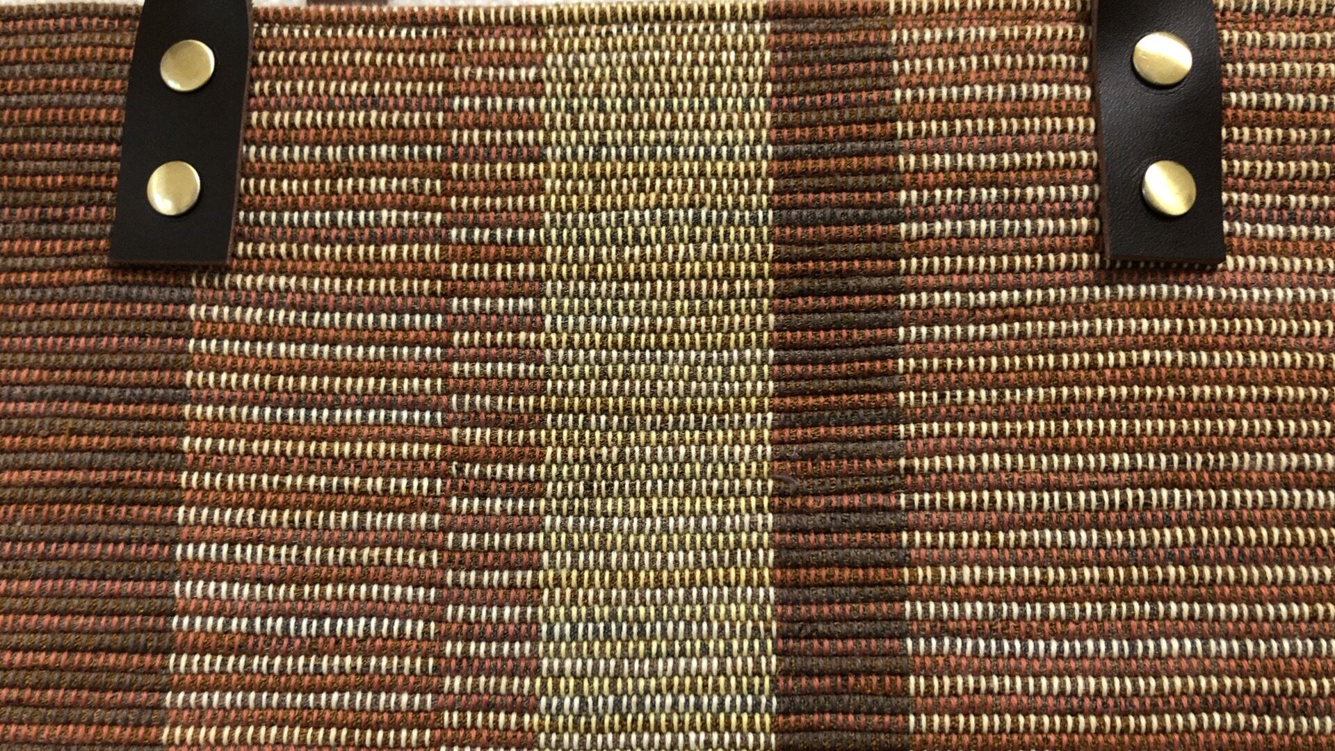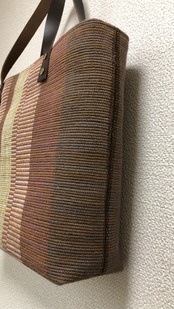 裂き織り ストライプハンドバッグ(本革持ち手)