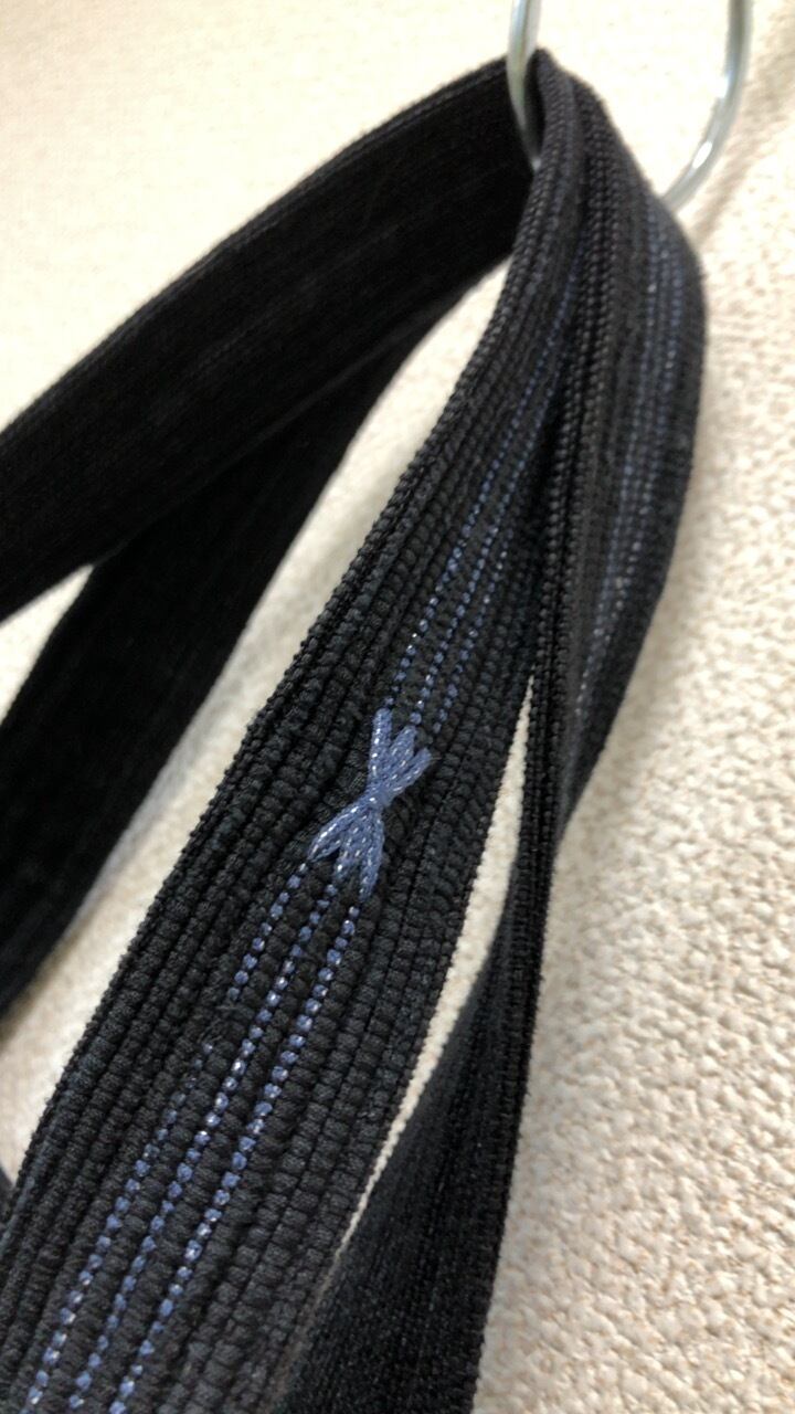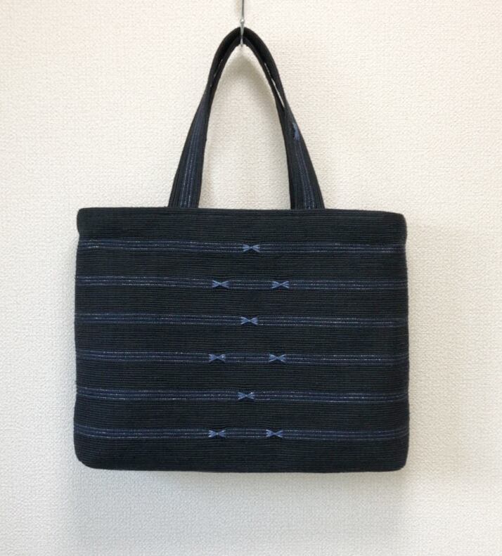 表地は、黒い綿モスにラメ入りのブルー糸で、