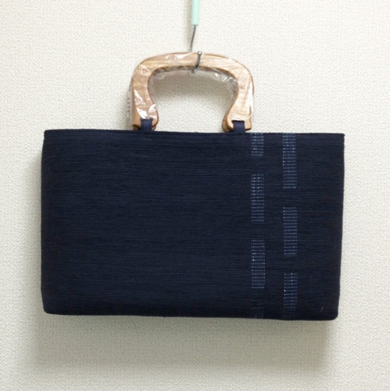 裂き織り 横長ハンドバッグ(木製持ち手)