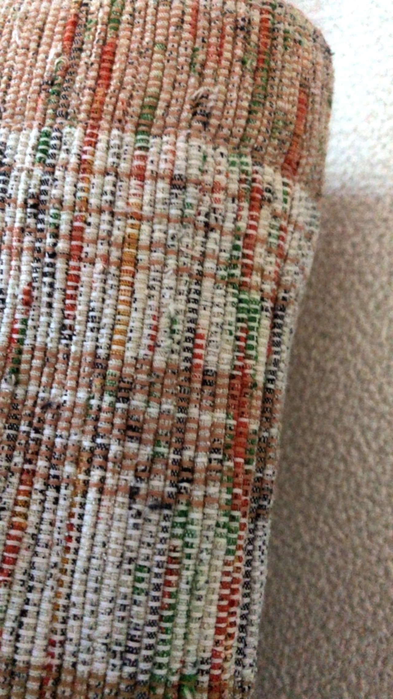 毛羽や糸くず繊維が出ていたりしますが、裂き織の風合いとご理解頂けましたら幸いです。