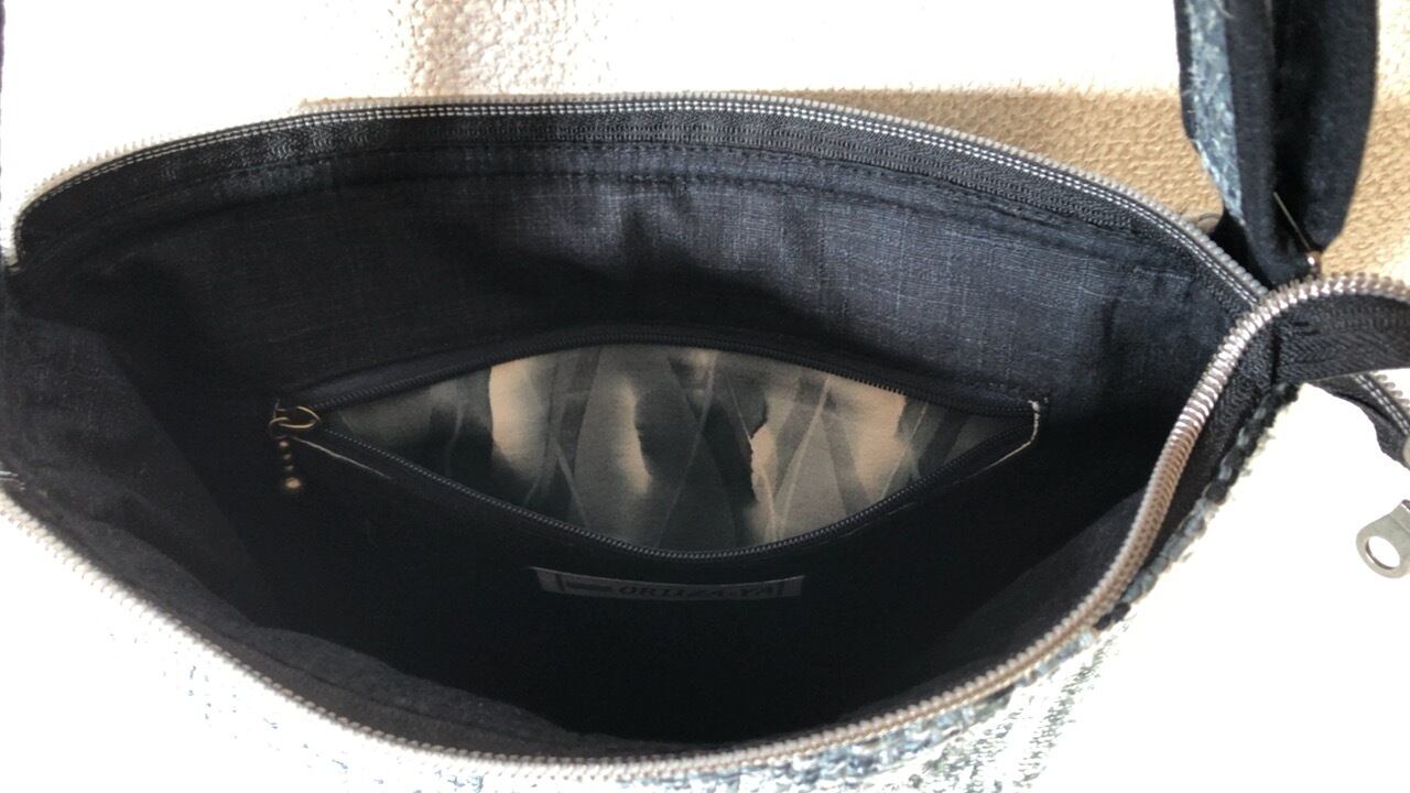 緯糸は水墨画調と黒の正絹着物の裂き糸です。