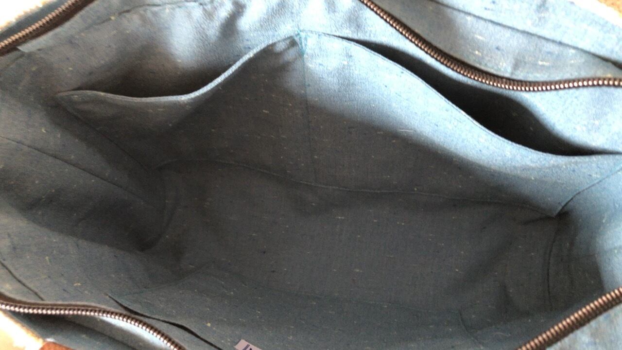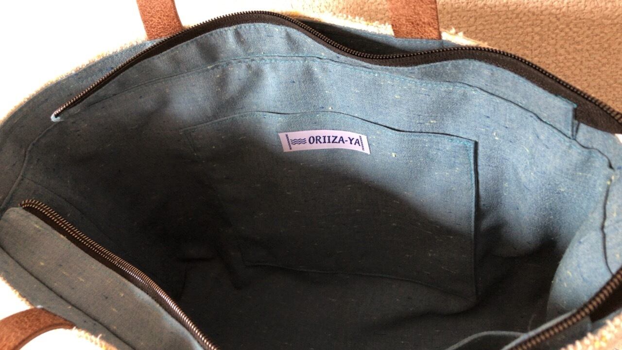 麻100%の蚊帳を裂き織り、しっかりめの芯地を貼って仕上げました。